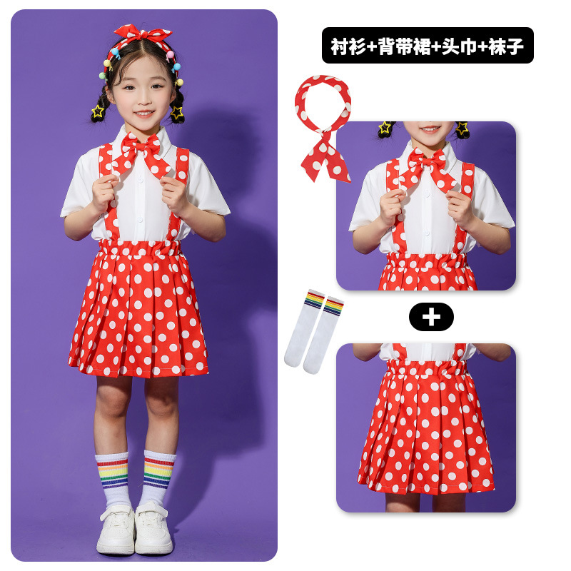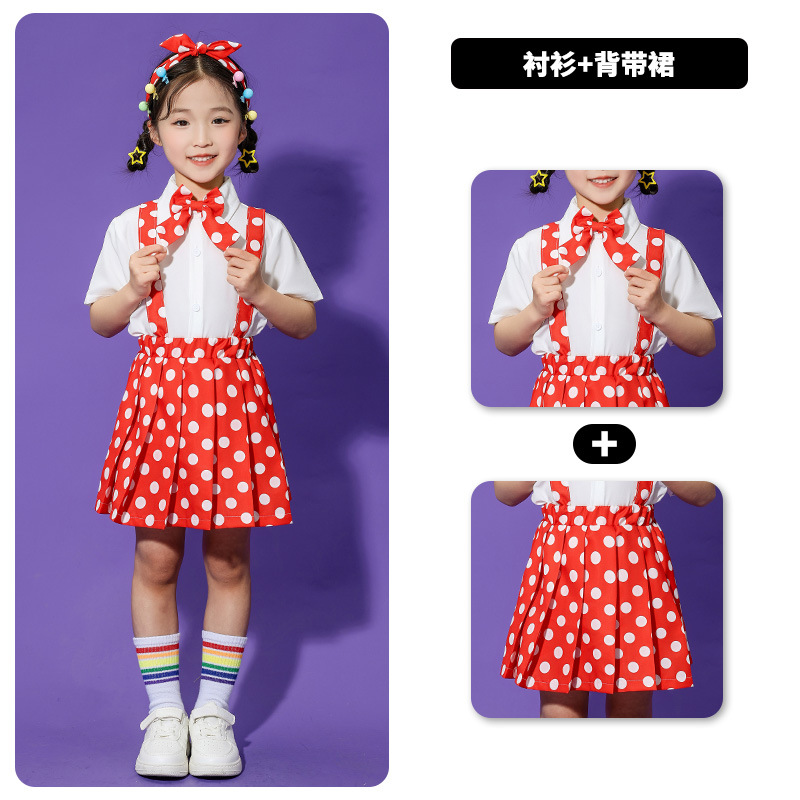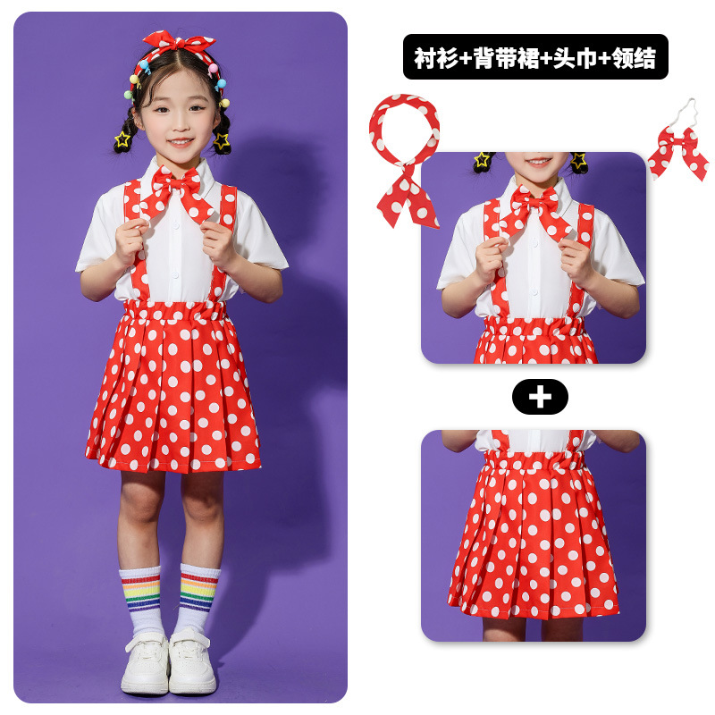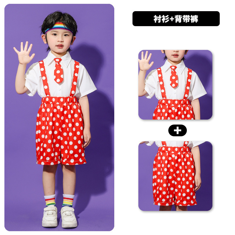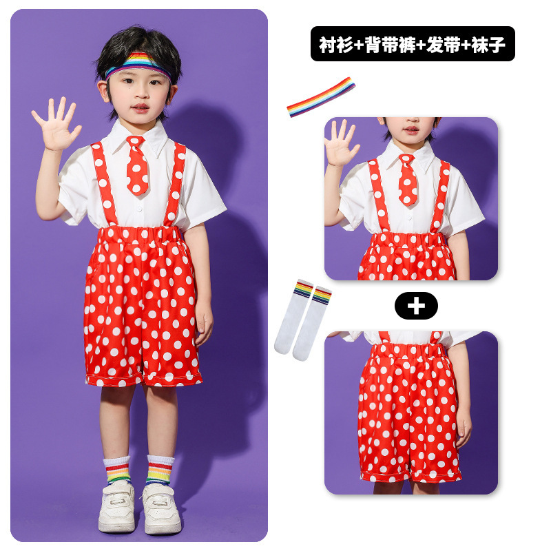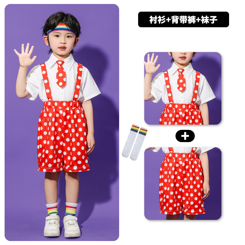어린이 세트 유치원 초등학생 합창단 읽기 공연 세트 귀여운 빨간 서스펜더 댄스 세트