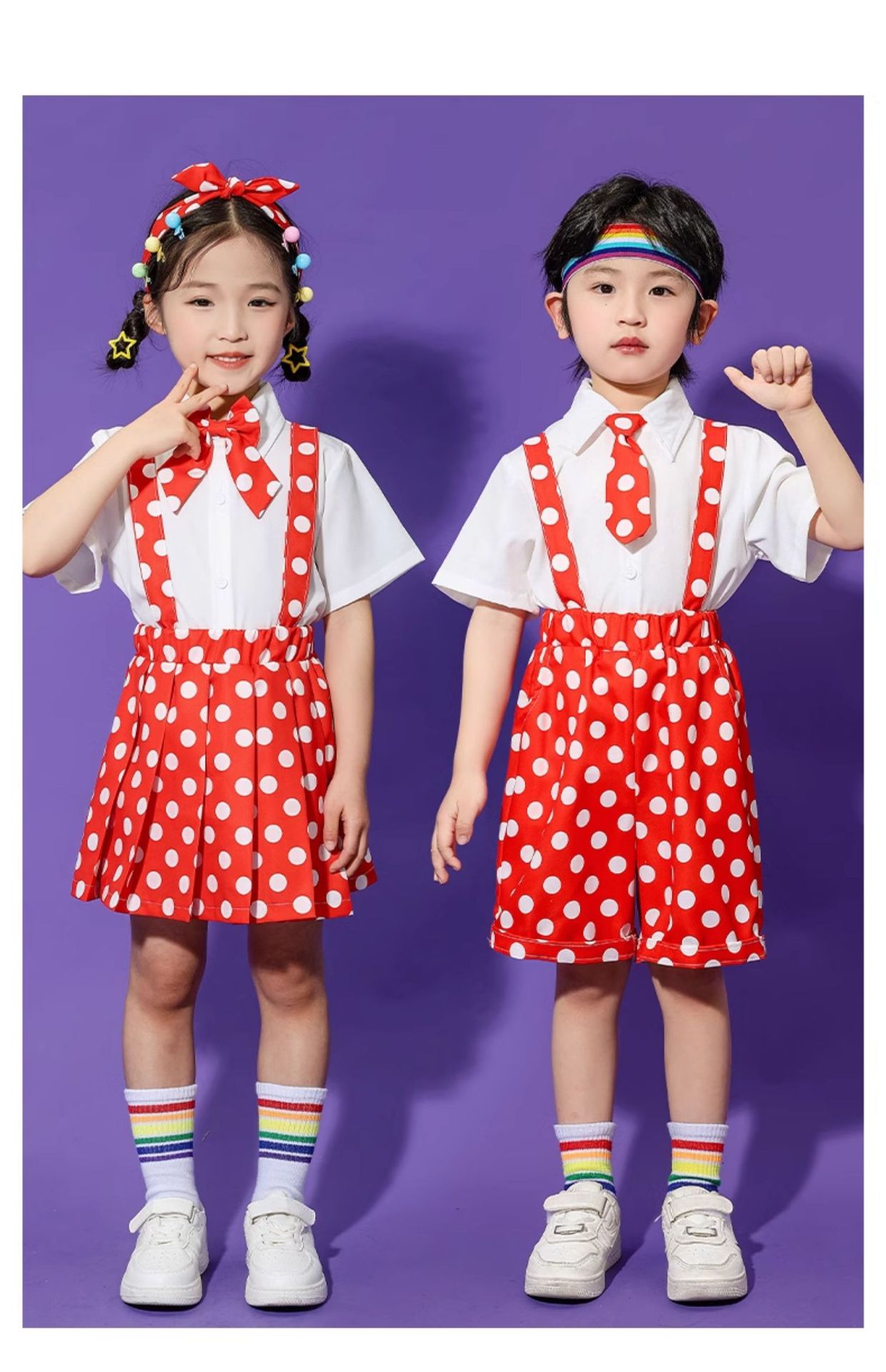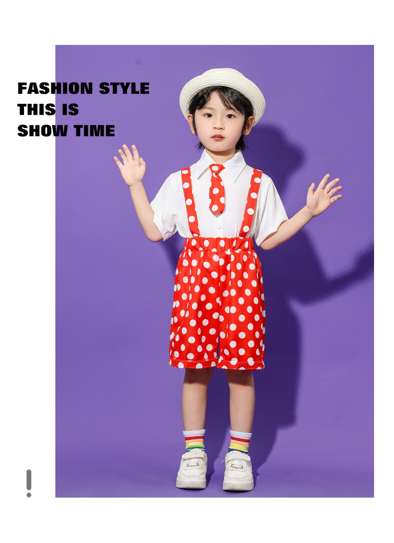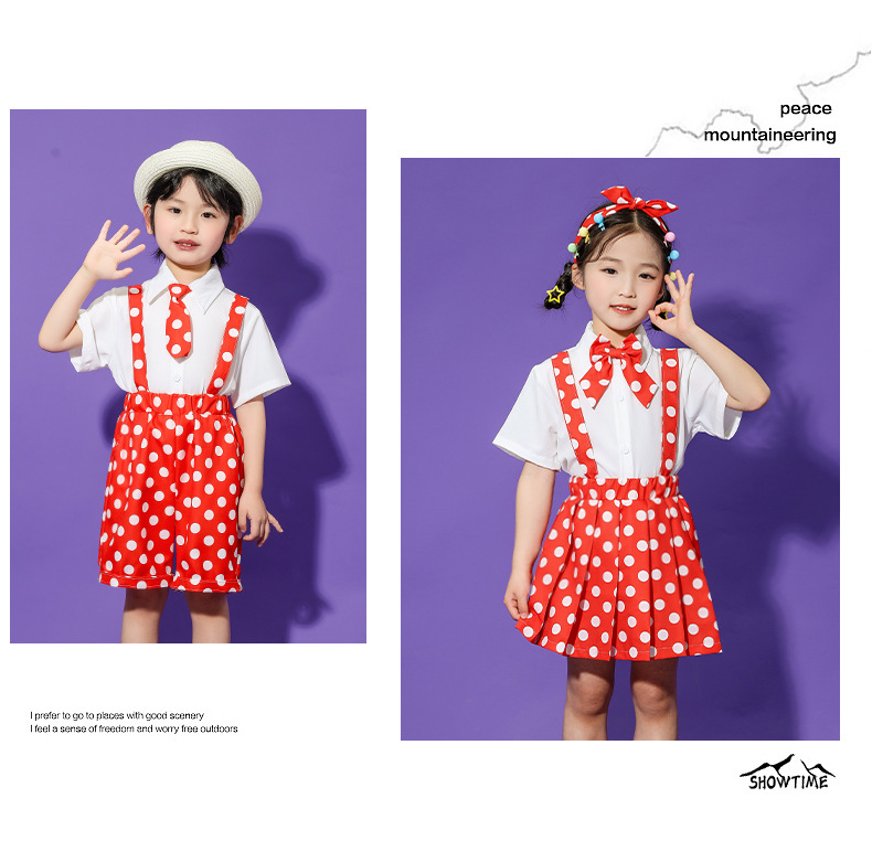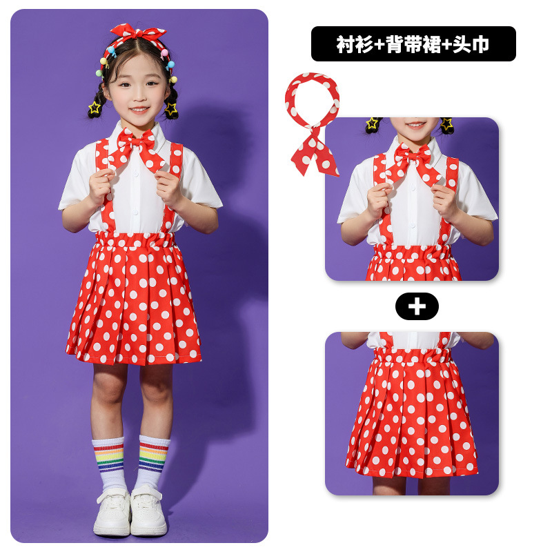 어린이 세트 유치원 초등학생 합창단 읽기 공연 세트 귀여운 빨간 서스펜더 댄스 세트