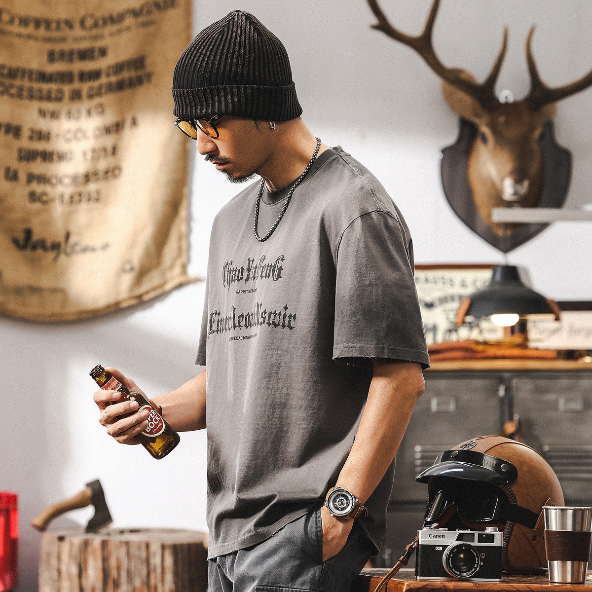 트렌디 한 브랜드 디자인 센스 반팔 아메리칸 스타일 하이 스트리트 프린트 티셔츠 남성 2025 뉴 여름 남성 루즈 티셔츠 탑스토어 가기