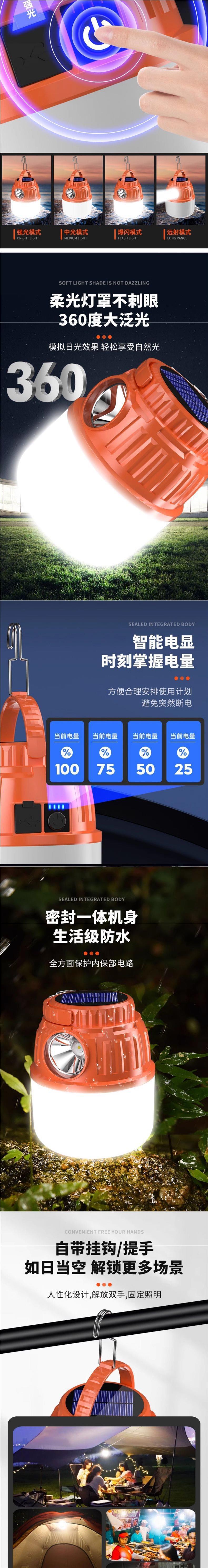 캠핑 조명, 태양광 실외 조명, 배터리 수명이 매우 긴 텐트 비상 조명, 충전식 교수형 조명, 캠핑 말 조명, 조명 분위기