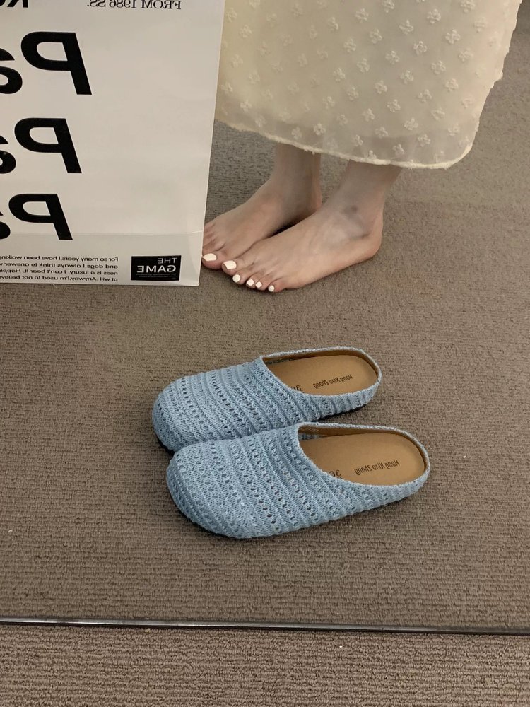 늦은 저녁 스타일 두꺼운 바닥 보헤미안 신발 여성 의상 2025 봄/여름 휴일 스타일 슬립 온 바오 터 하프 드래그 싱글 신발
