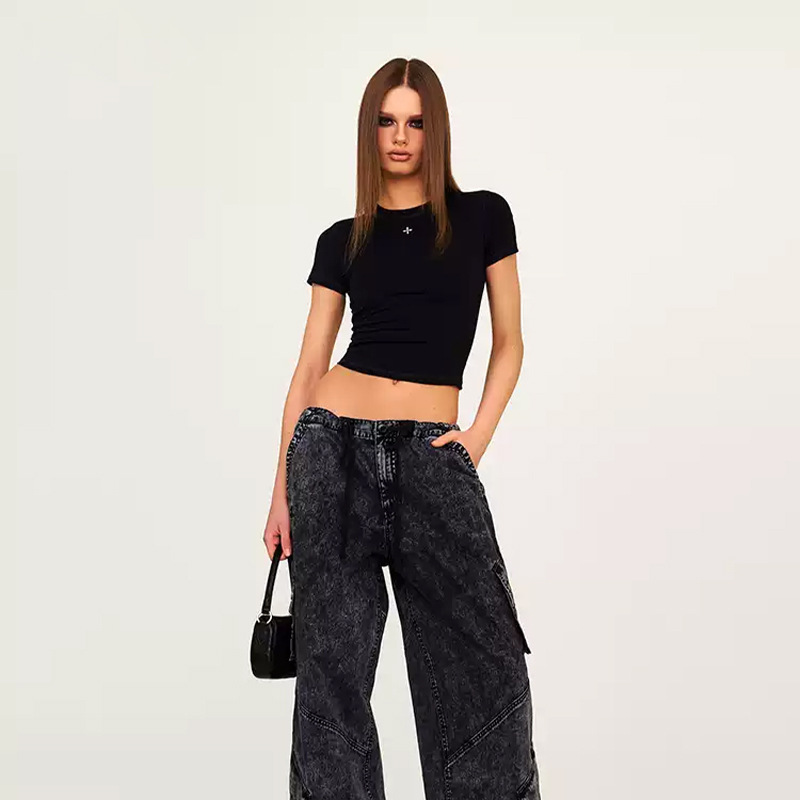 • 허리 짧은 소매 스몰 x-wilderness 블랙