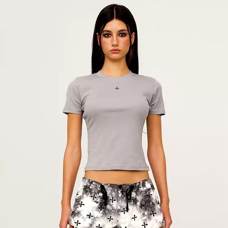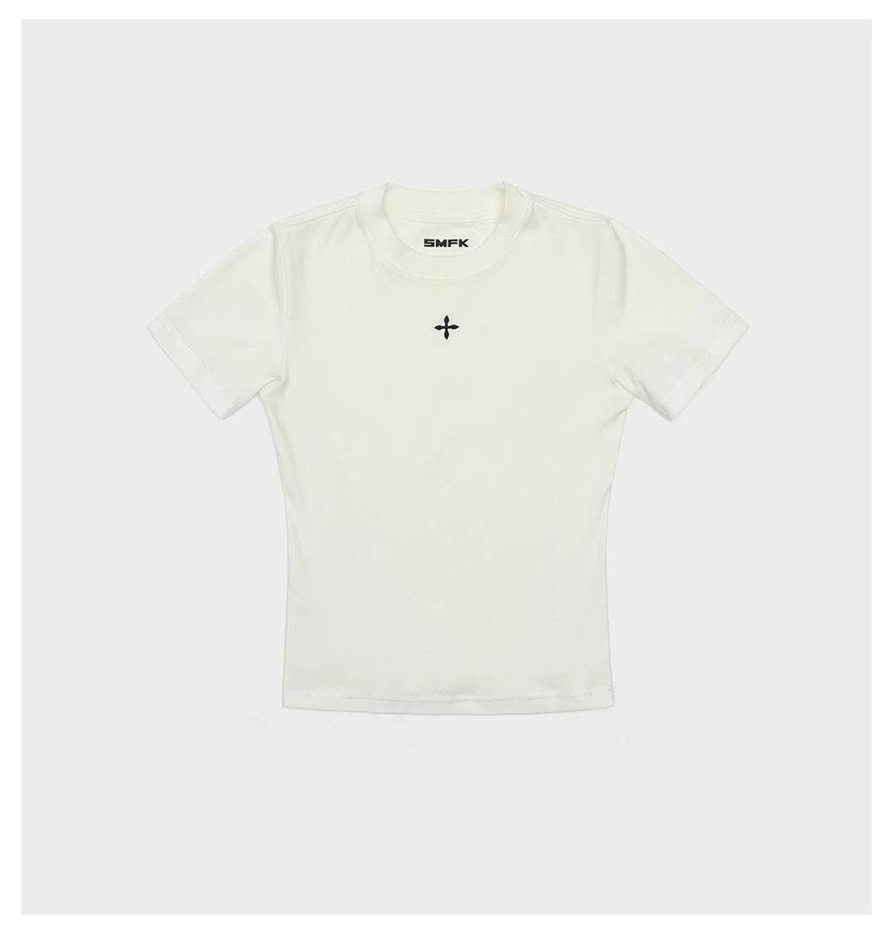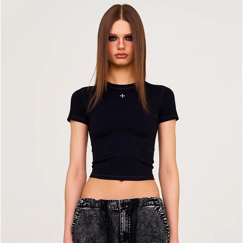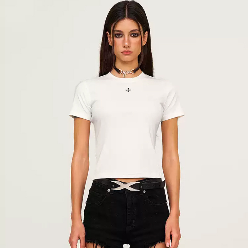 CXCCP 크로스 배지 허리 티셔츠 자수 스포츠 라운드 넥 반팔 티셔츠 25 새로운 스타일