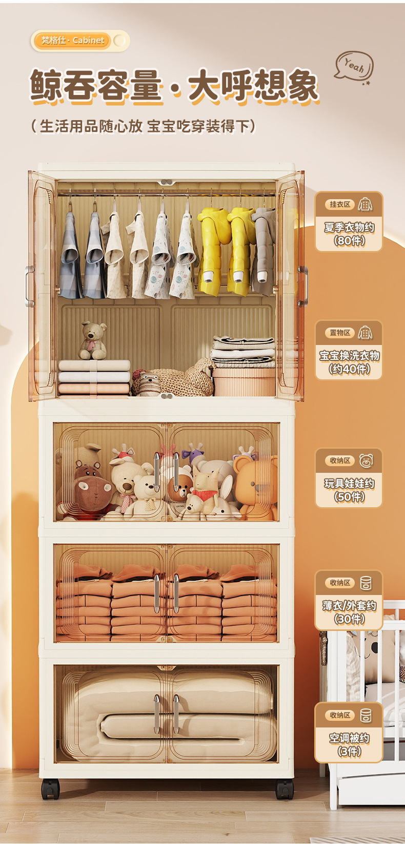 보관 캐비닛 설치가 필요없는 어린이 옷장 플라스틱 아기 옷 보관 캐비닛 홈 침실 바닥 접이식 보관 캐비닛스토어 가기
