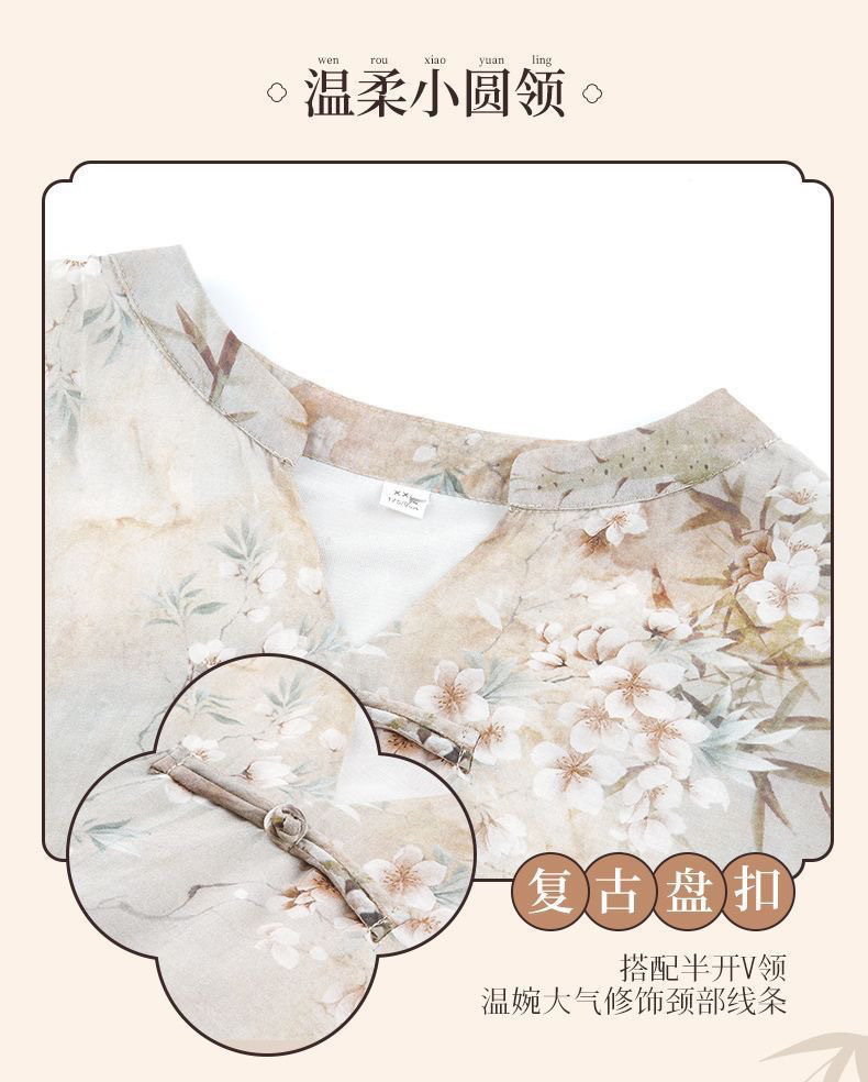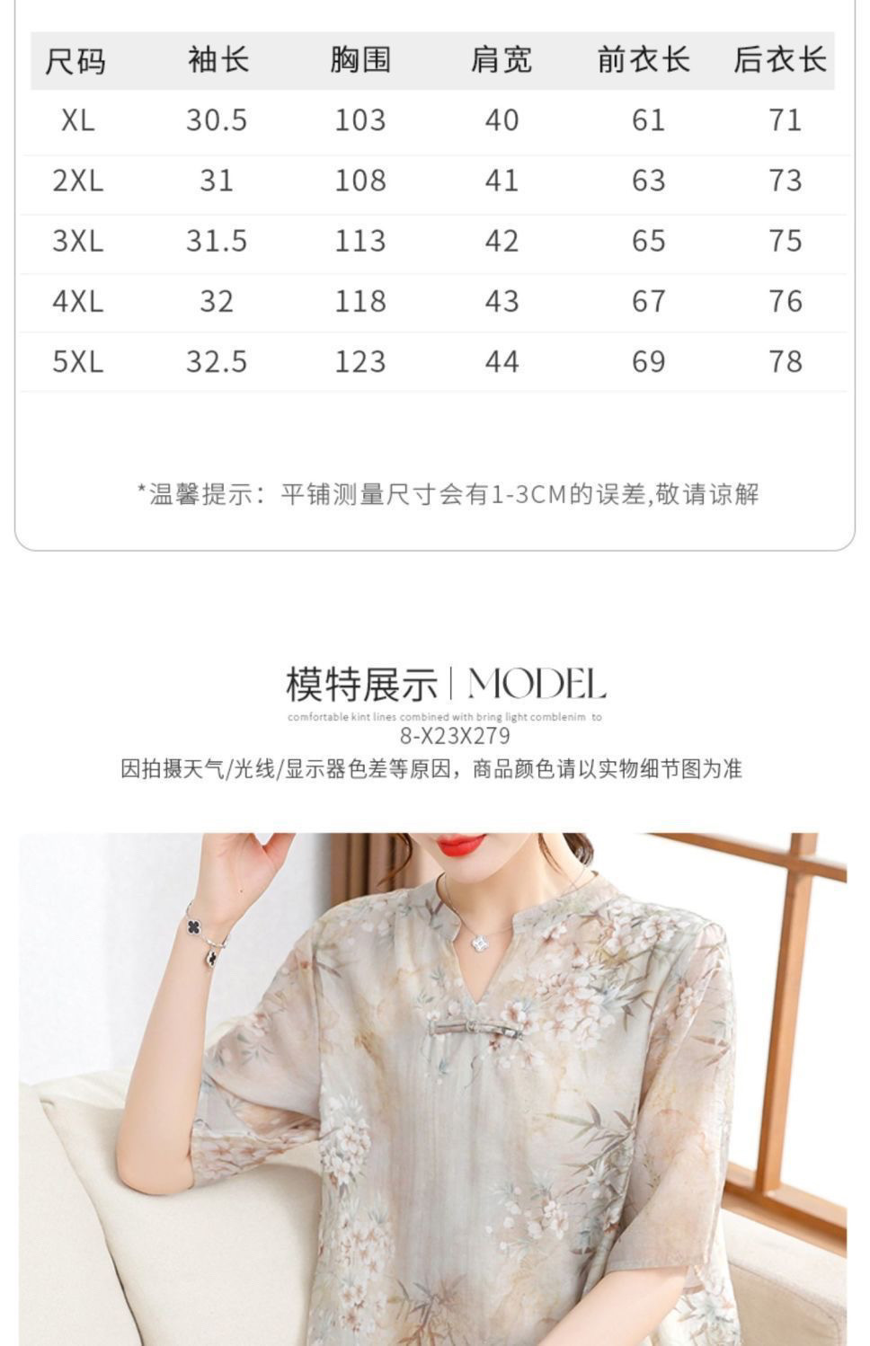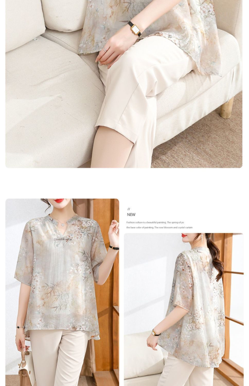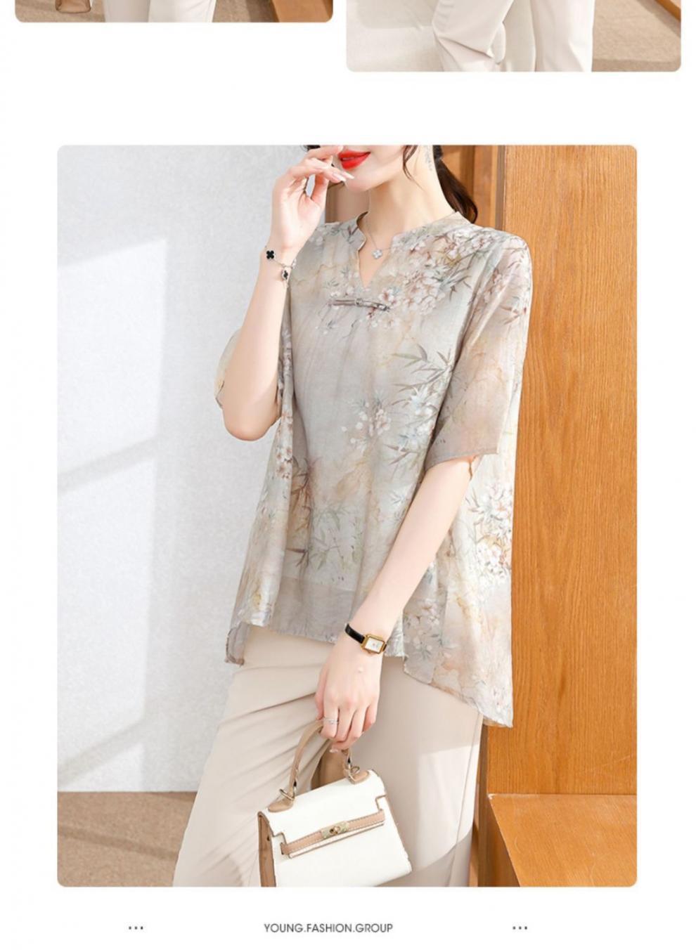 어머니의 날 어머니의 2024 여름 새로운 반팔 쉬폰 셔츠 패션 세트 중년 및 노인 여성 셔츠 탑 옷스토어 가기