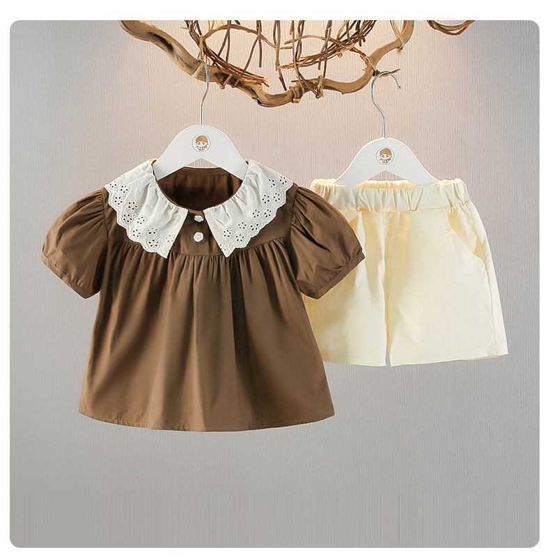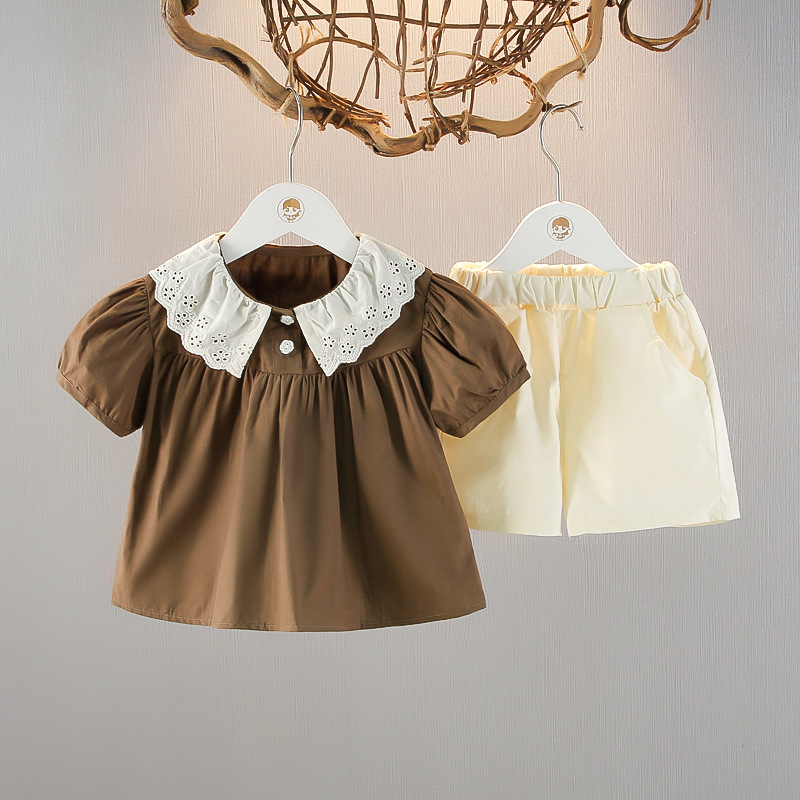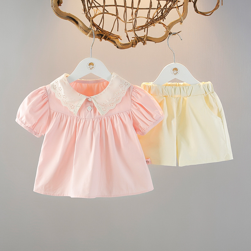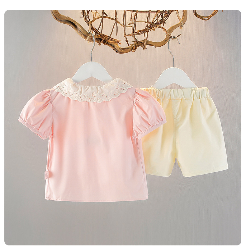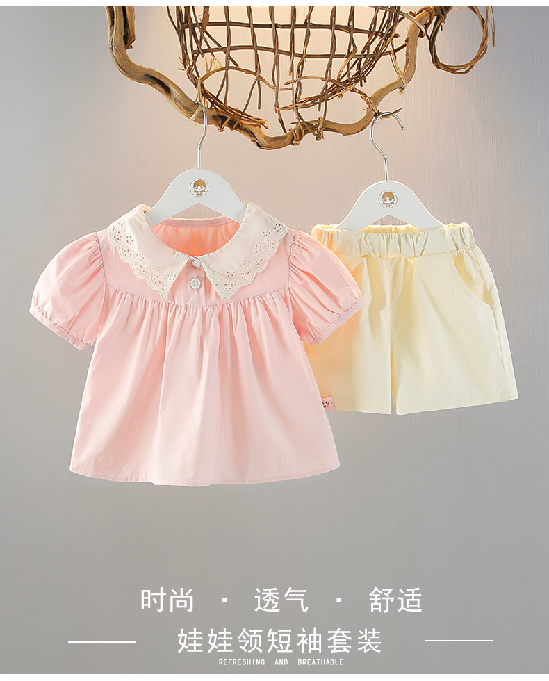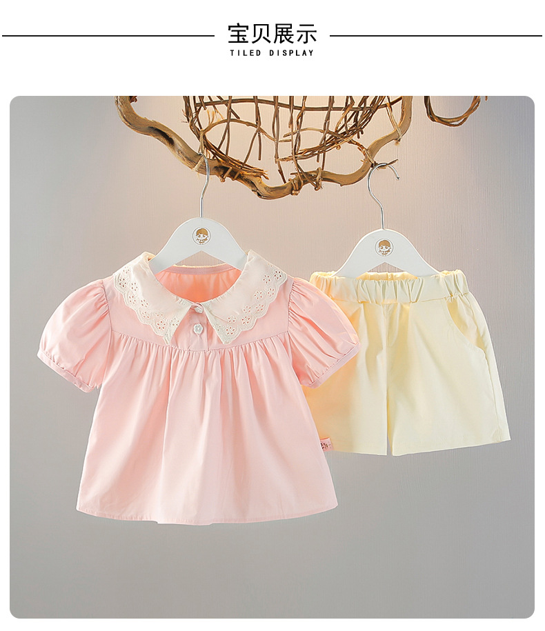 아기 소녀의 캐주얼 반바지 여름 반팔 투피스 세트 여름 새로운 소녀 유행 얇은 어린이 서양식 세트스토어 가기