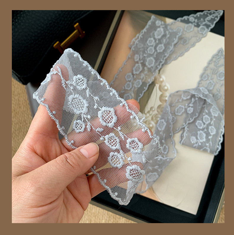 • 라이트 그레이 [꽃 레이스 자수 롱 리본]
