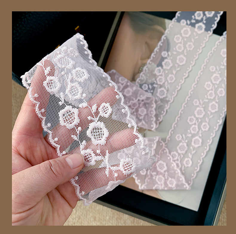 • 라이트 핑크 [꽃 레이스 자수 롱 리본]