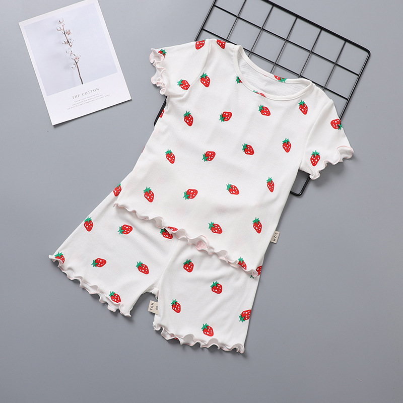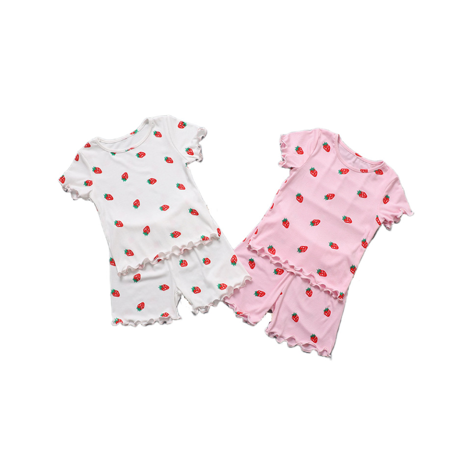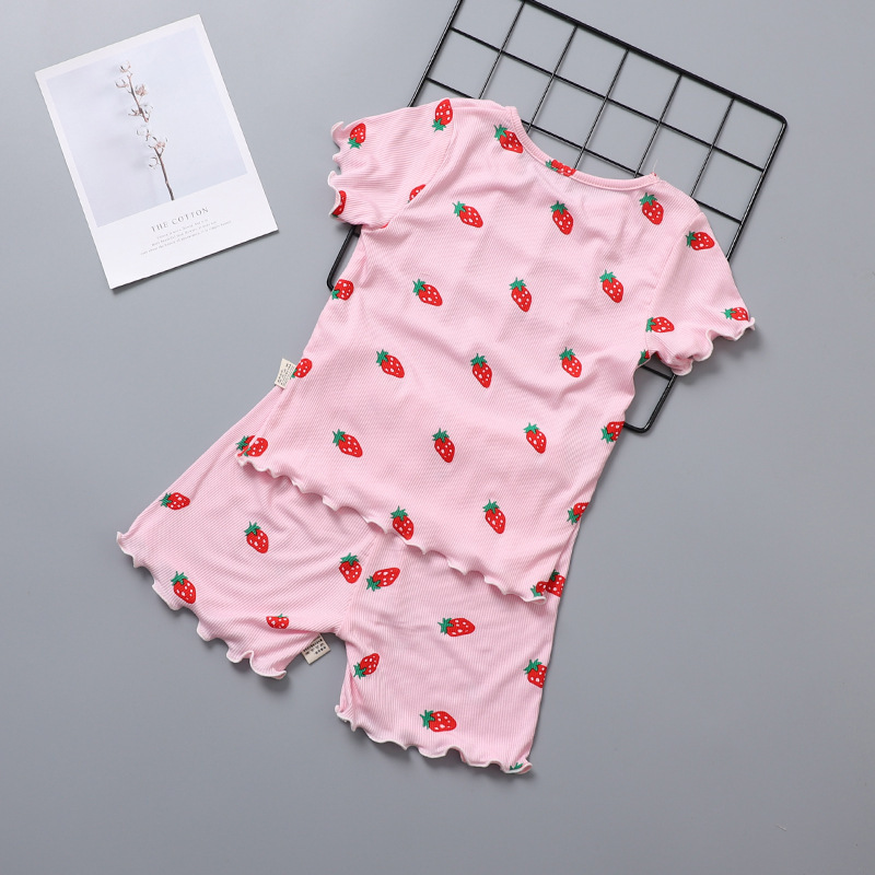 아이스 실크 직물 얇은 반팔 반바지 세트 홈 의류 여름 소녀 잠옷 아기 소녀 에어컨 세트 투피스 세트스토어 가기
