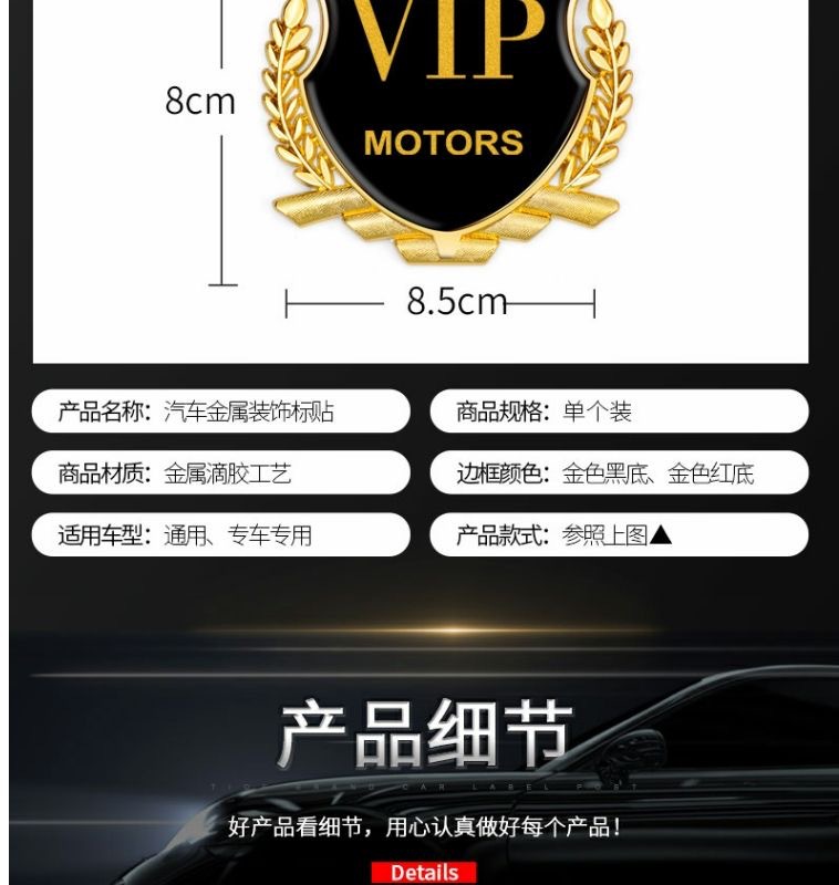 자동차 VIP 밀 3D 입체 금속 자동차 로고 측면 라벨 수정 삼각형 창 자동차 후면 로고 바디 장식 라벨스토어 가기