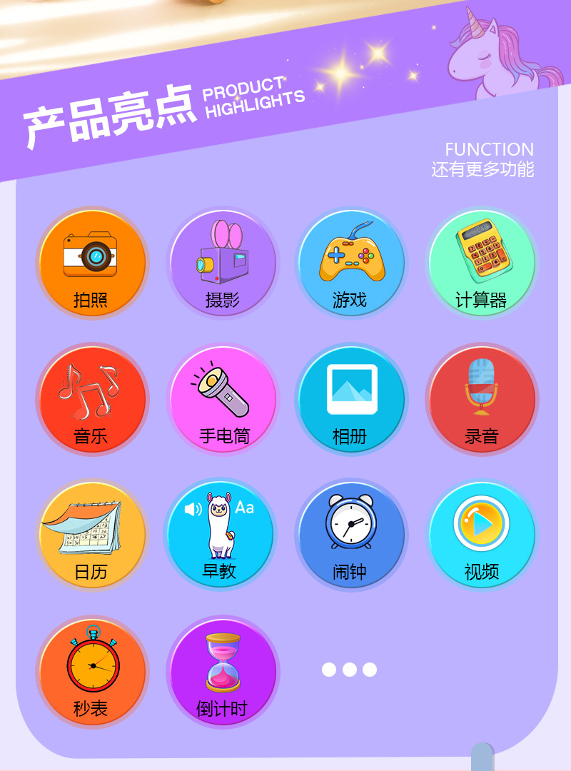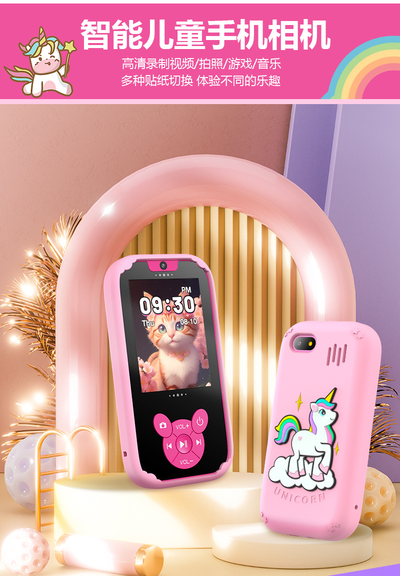 [공장 직접 공급] Zongxin W9 어린이 MP3 휴대 전화 비디오 촬영 사진 엔터테인먼트 만화 유니콘 카메라 재미스토어 가기