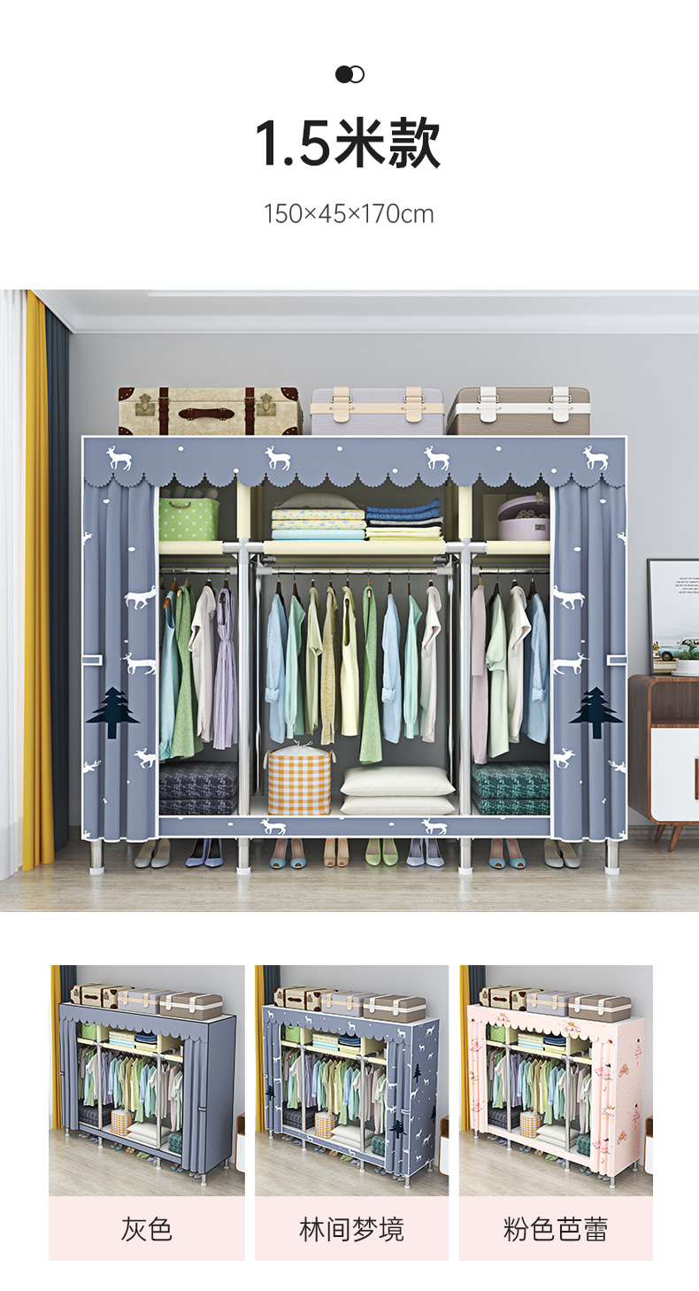 옷장 간이 천옷장 강철관 두꺼운 조인트 임대실 학생 기숙사 여아 수납 옷장 B^t스토어 가기