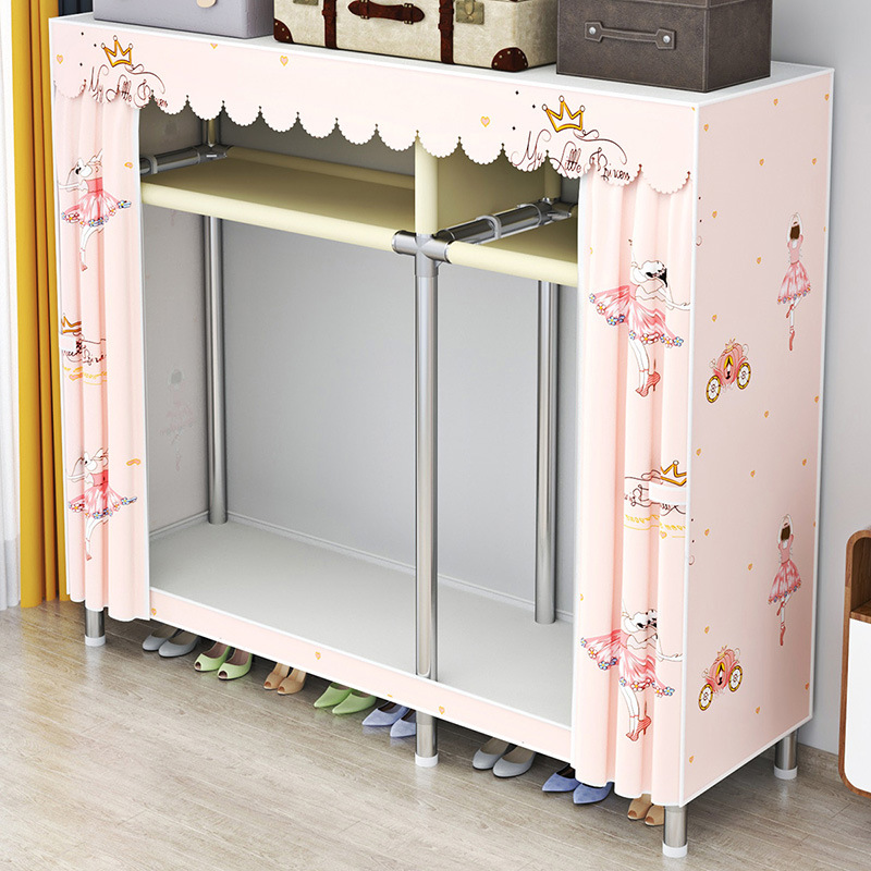 옷장 간이 천옷장 강철관 두꺼운 조인트 임대실 학생 기숙사 여아 수납 옷장 B^t