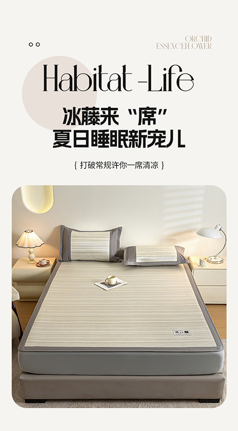 국경 간 라이브 폭발 클래스 A 암호화 된 아이스 등나무 매트 3 피스 세트 암호화 된 여름 매트 풀 팩 침대 모자 오래된 등나무 매트 도매