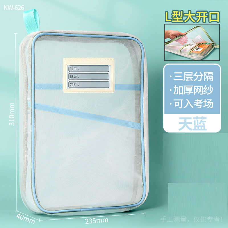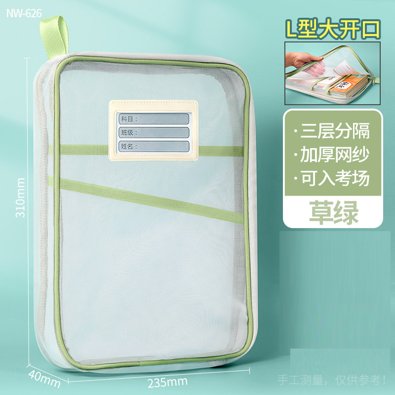 대용량 높은 색상 값 L 자형 주제 분류 가방 두꺼운 메쉬 파일 가방 학생 Schoolbag 책 보관 가방