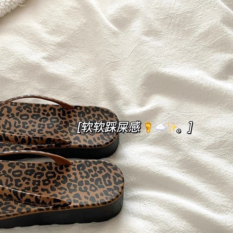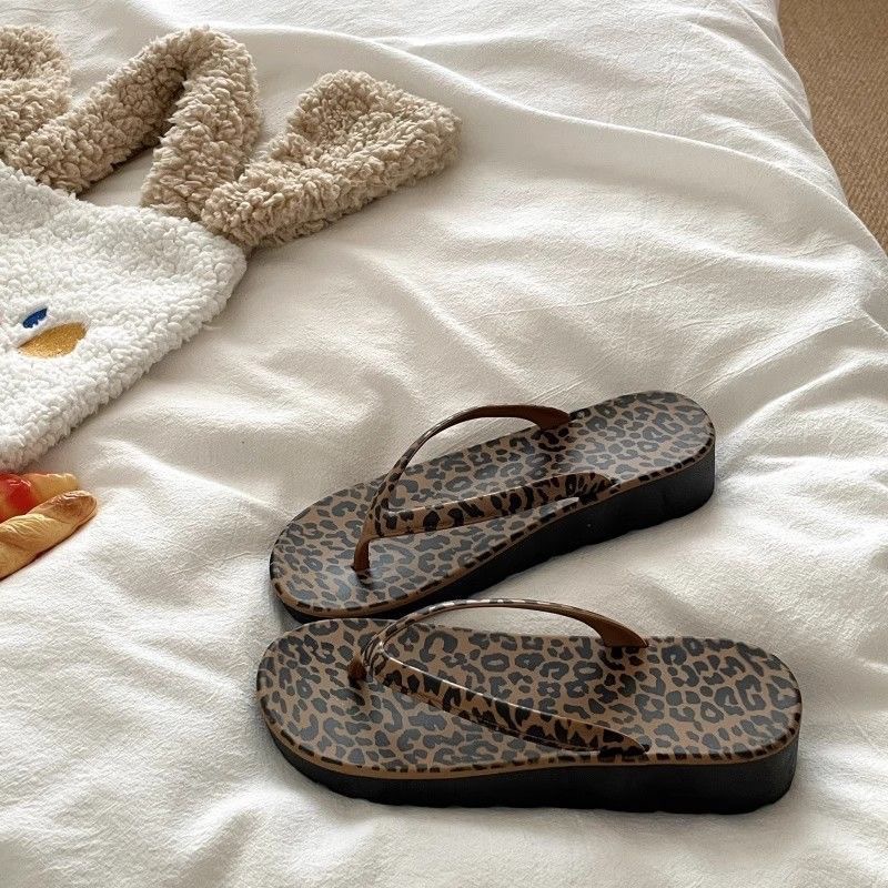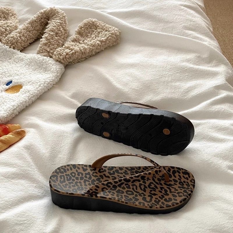 • 2538 레오파드 프린트 웨지 플립플롭