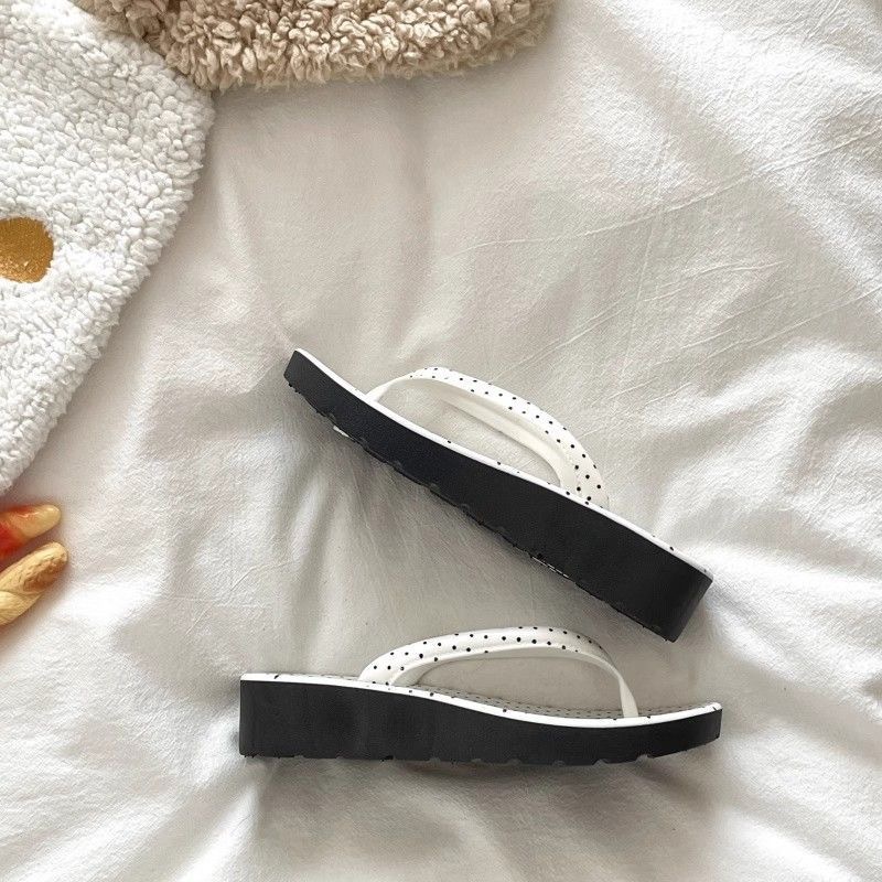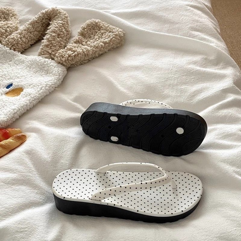• 흰색과 검정색 도트무늬 [2538 웨지슬리퍼]