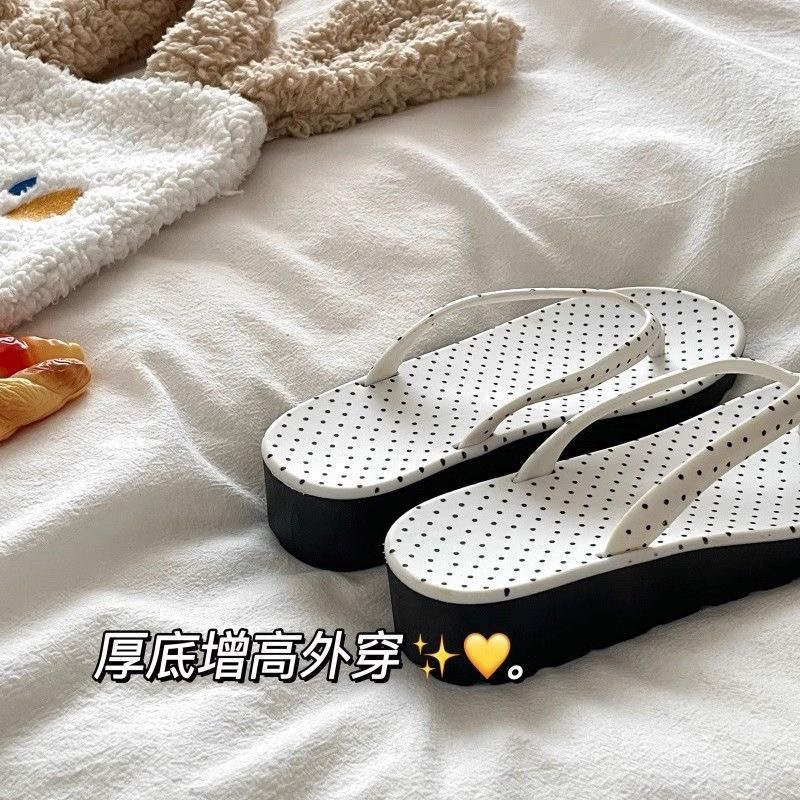 여성을위한 패션 웨지 소프트 솔 플립 플롭 신발 두꺼운 밑창 미끄럼 방지 높이 증가 여름 새로운 패션 실내 Ins 한국어 버전 신발스토어 가기