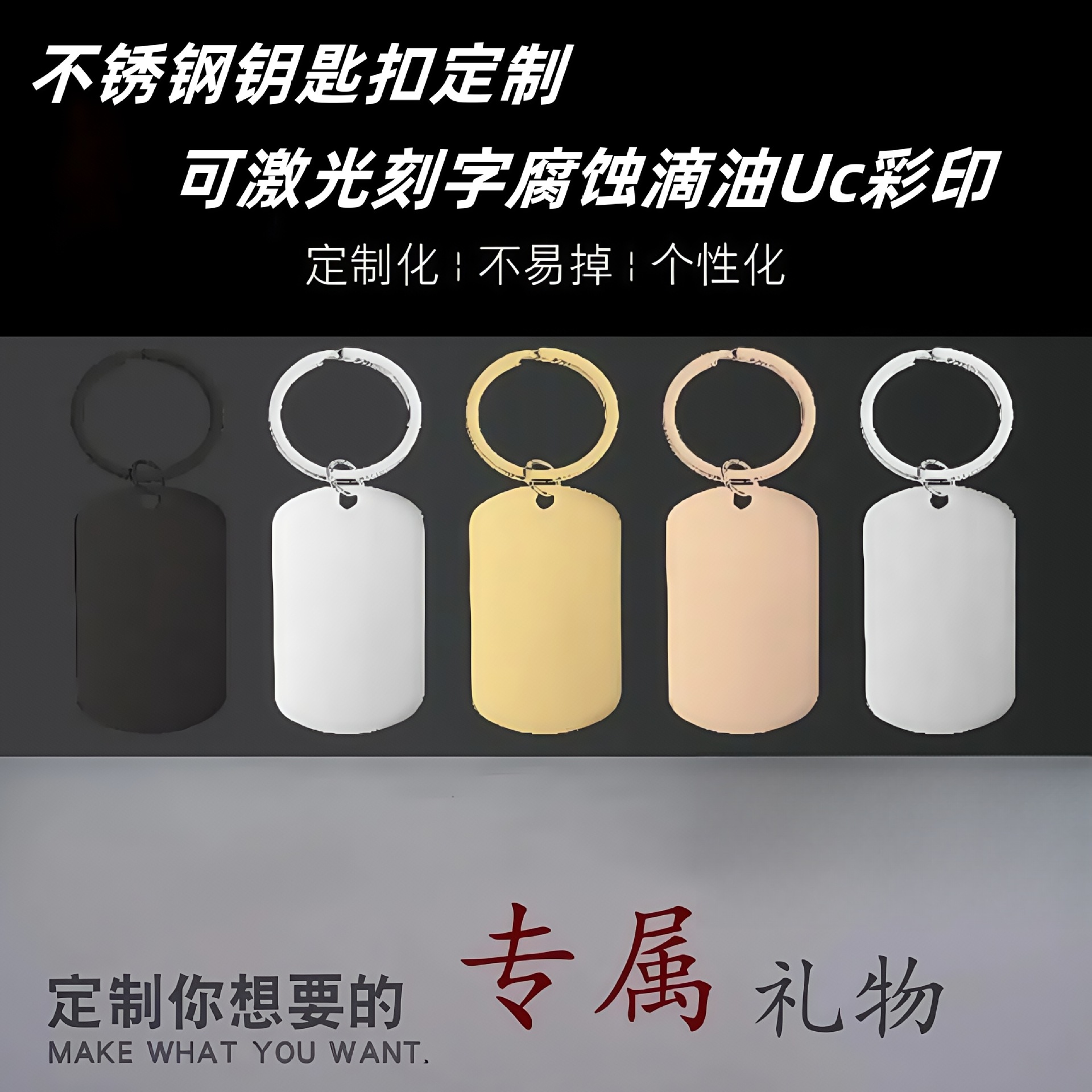 스테인레스 스틸 빈 키 체인 레이저 컬러 인쇄 부식 오일 드롭 소재 휴일 선물 조각 금속 키 체인