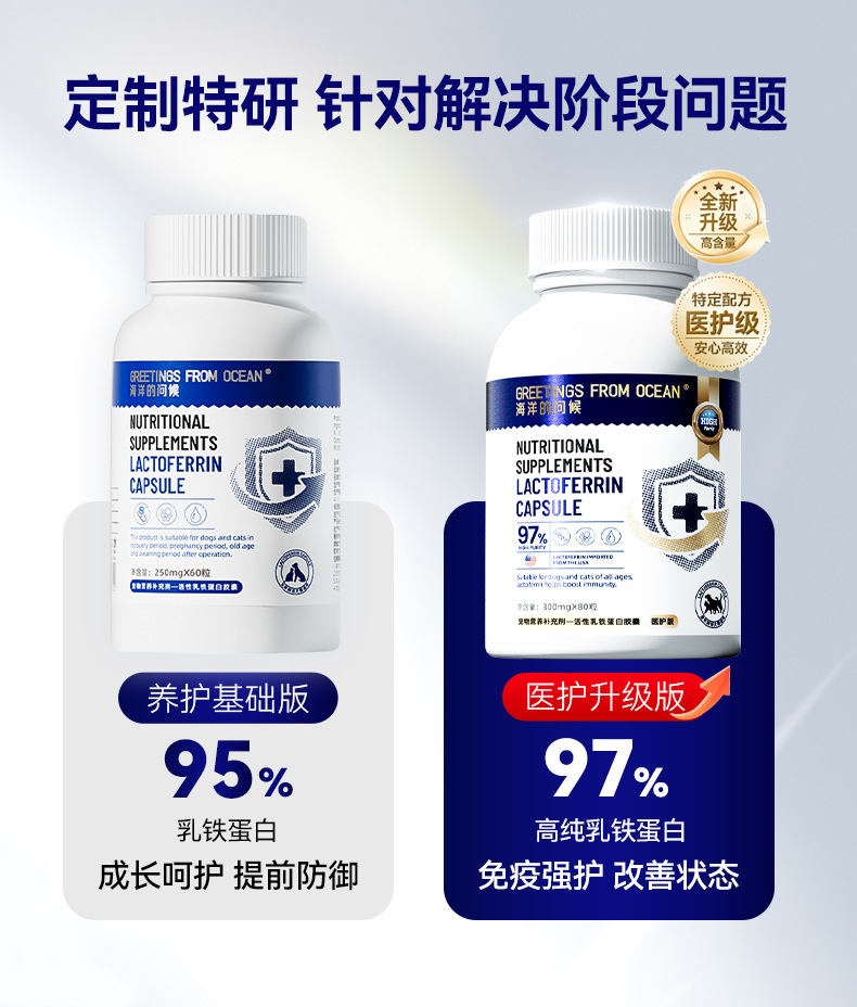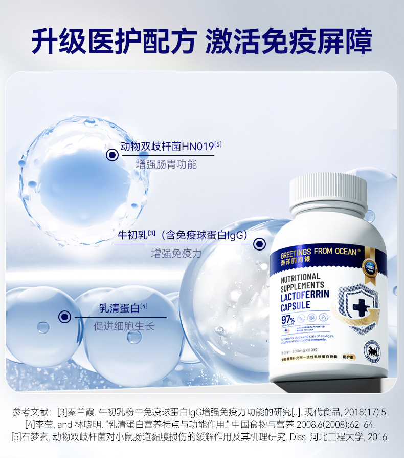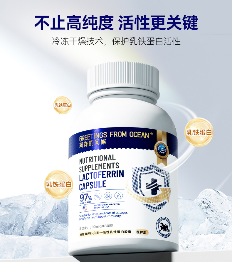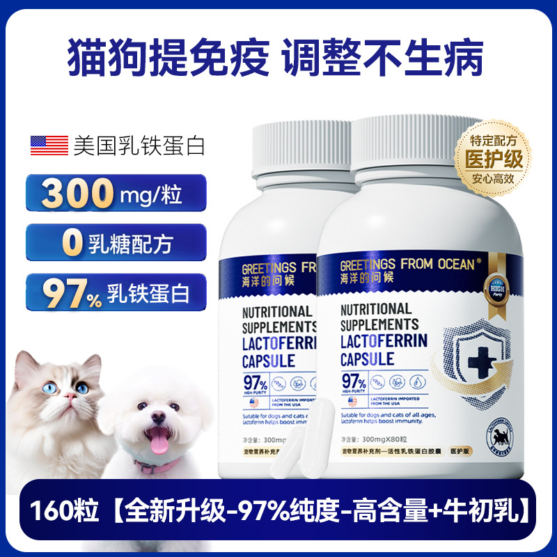 고양이용 락토페린, 고양이용, 강아지용, 유당 0, 고순도 97%, 고양이 및 강아지용 위장조절 애완동물 캡슐