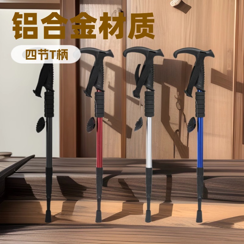 맞춤형 야외 여행 지팡이 하이킹 스틱 알루미늄 합금 망원경 등반 스틱 4 T 핸들 야외 등반 스틱 공급스토어 가기