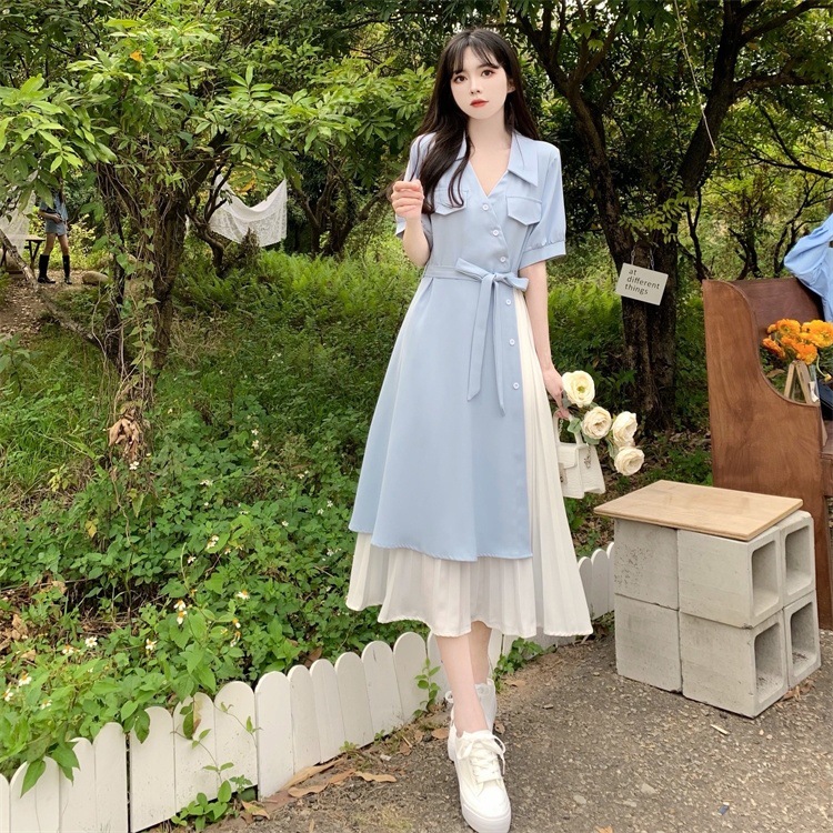 2025 년 여름 새로운 레트로 프렌치 칼라 원피스 디자인 센스 틈새 기질 타이트 허리 슬리밍 불규칙한 원피스스토어 가기