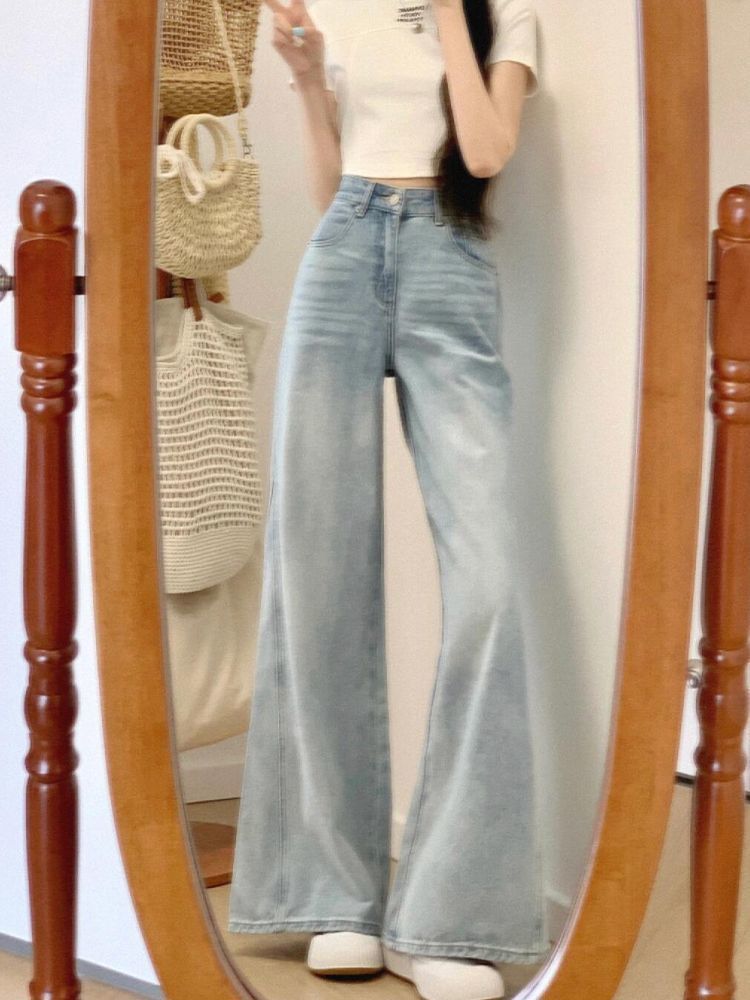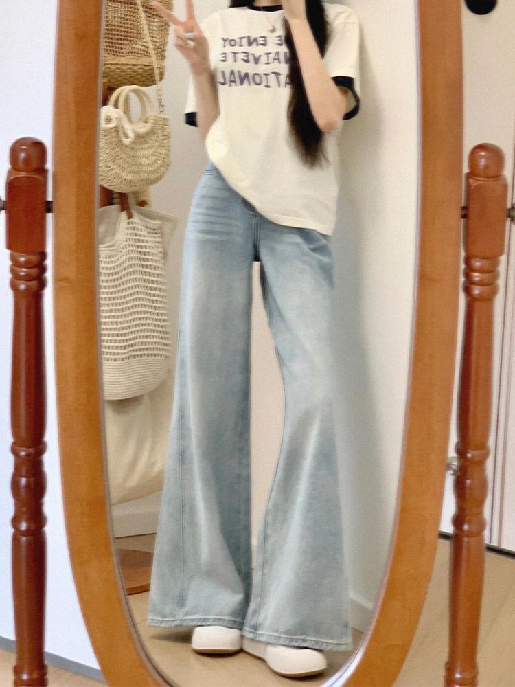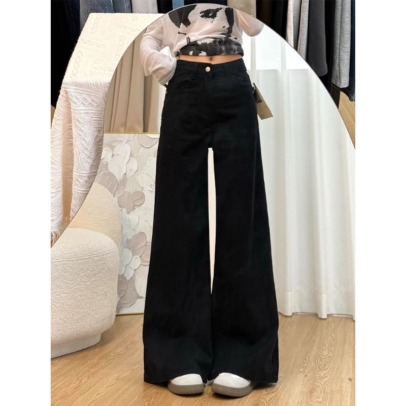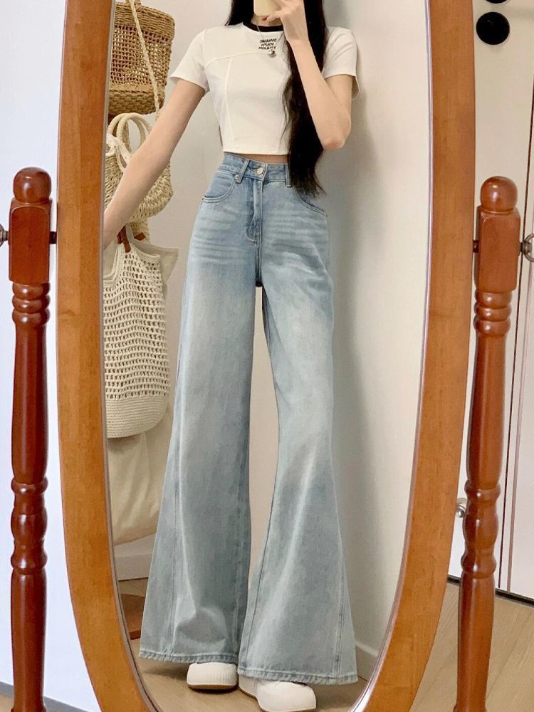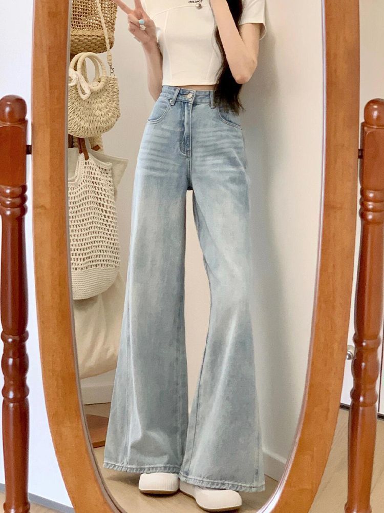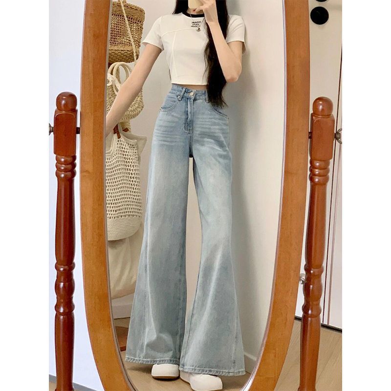 플러스 사이즈 마이크로 라 청바지 여성의 봄과 여름 2025 새로운 지방 느슨한 슬리밍 배 모양의 뿔 데님 바지스토어 가기