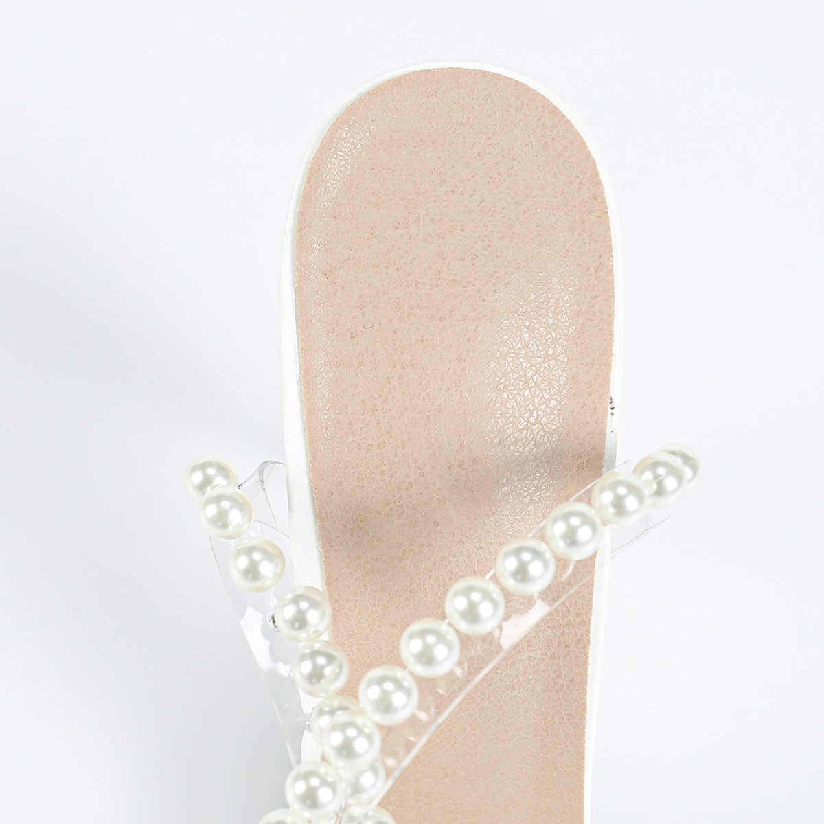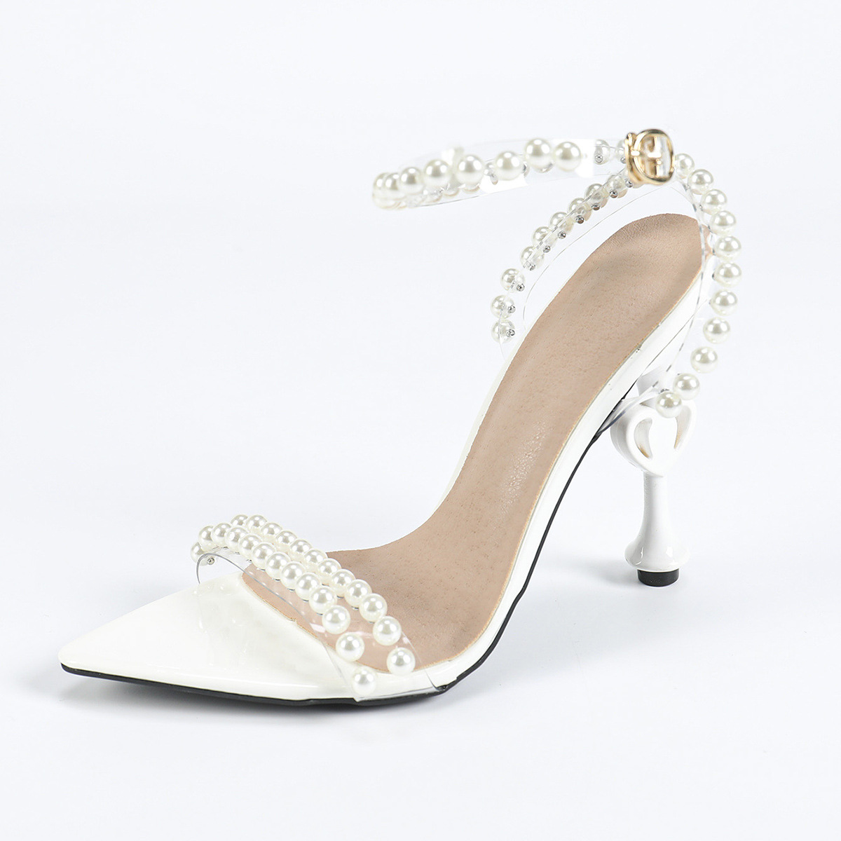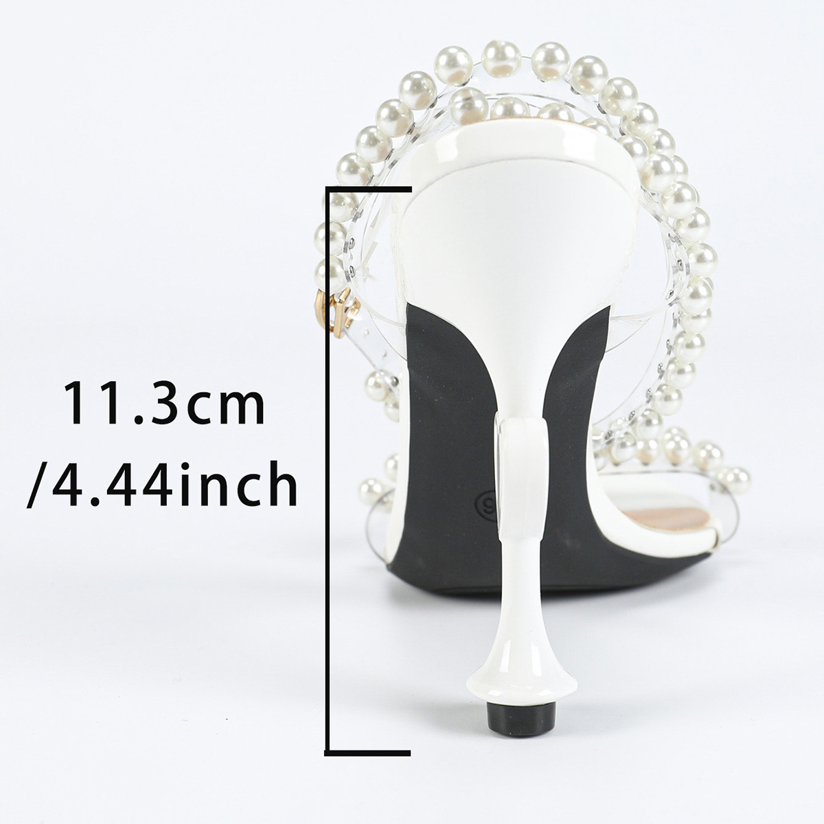 2025 새로운 진주 디자인 센스 틈새 우아한 투명 스트랩 샌들 여성 여름 스틸레토 요정 하이힐