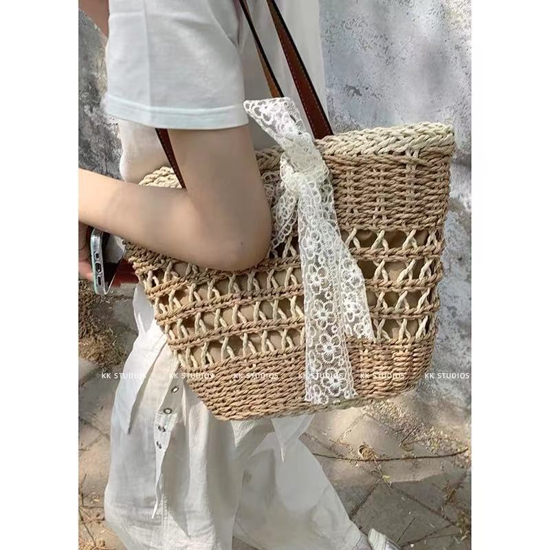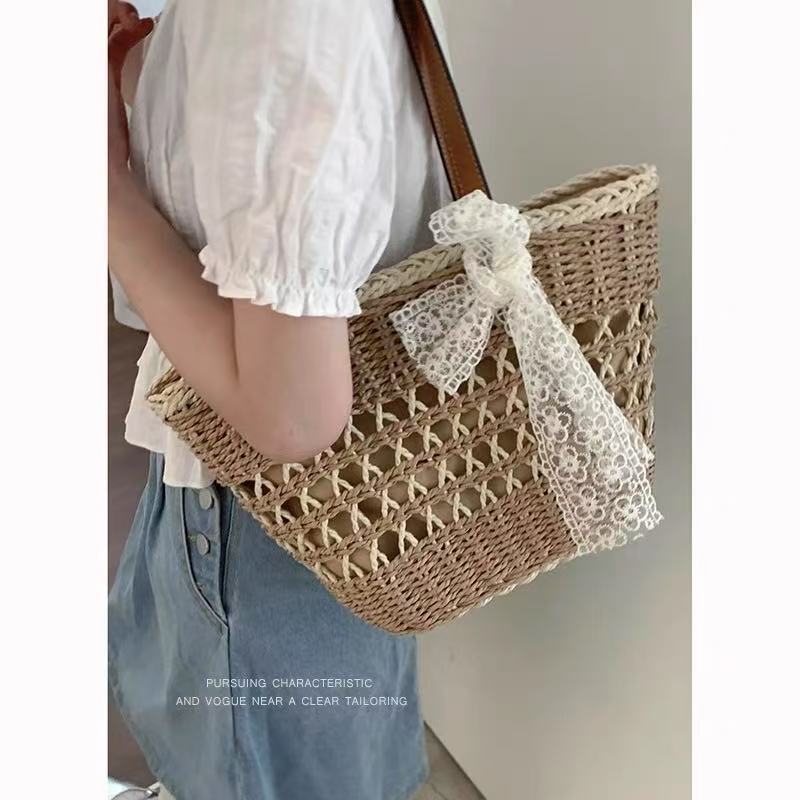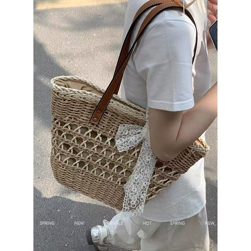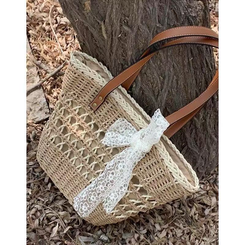 인터넷 축하 같은 스타일 밀짚 가방 해변 휴가 수제 짠 대용량 올매치 토트 유행 비치 숄더 백스토어 가기