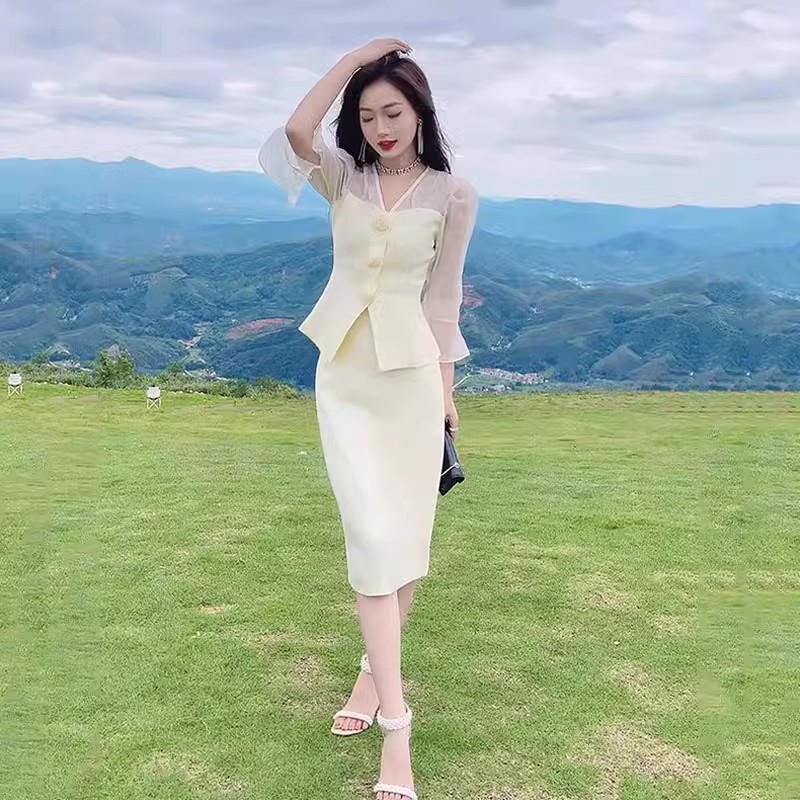 2025 봄 신입 허리 탑 스커트 기질 연령 감소 통근 핑크 세트 스커트 여성 세트스토어 가기