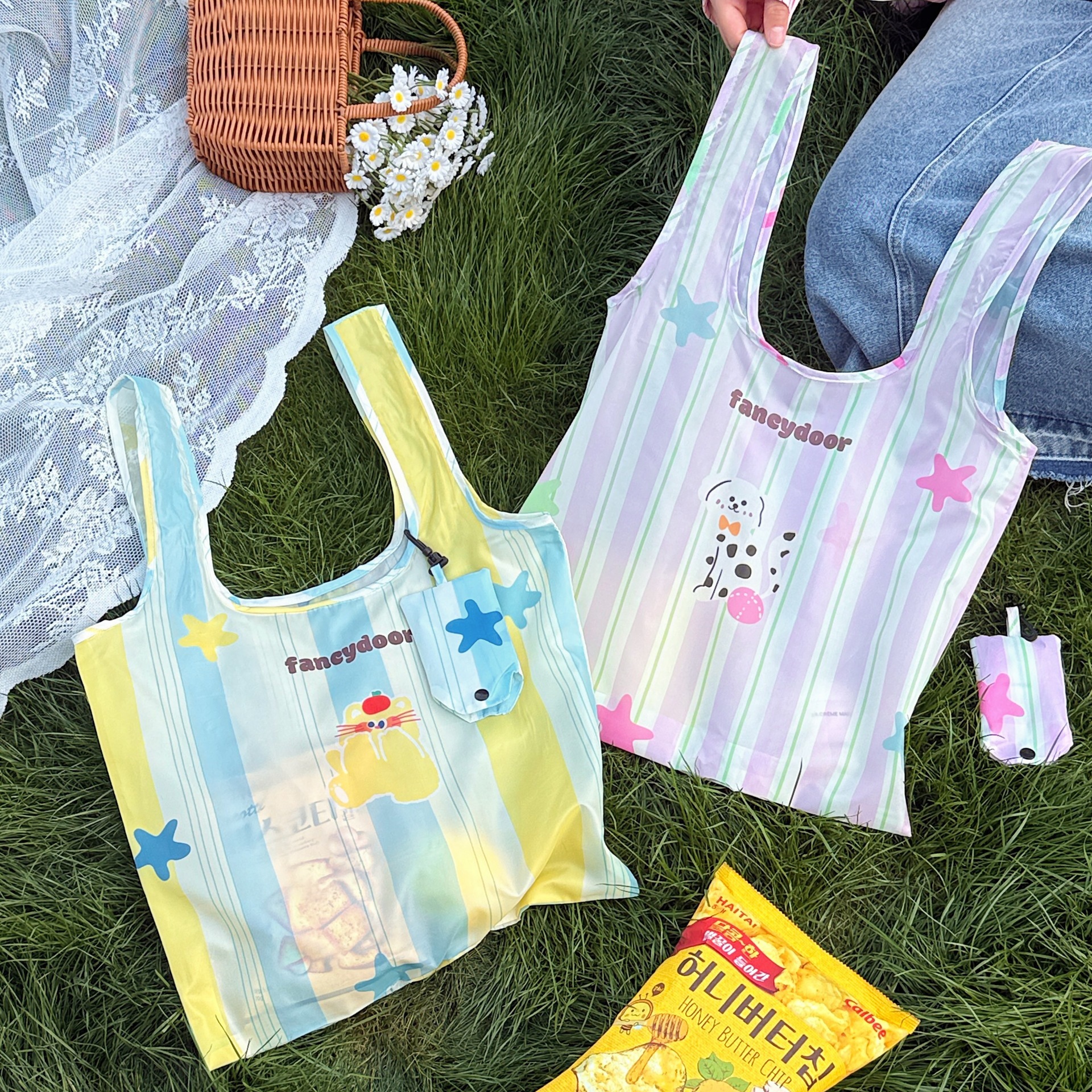 인즈 스타일 접이식 보관 쇼핑백 대용량 환경 친화적 인 가방 고가 핸드백 휴대용 슈퍼마켓 쇼핑백스토어 가기