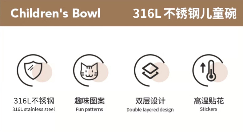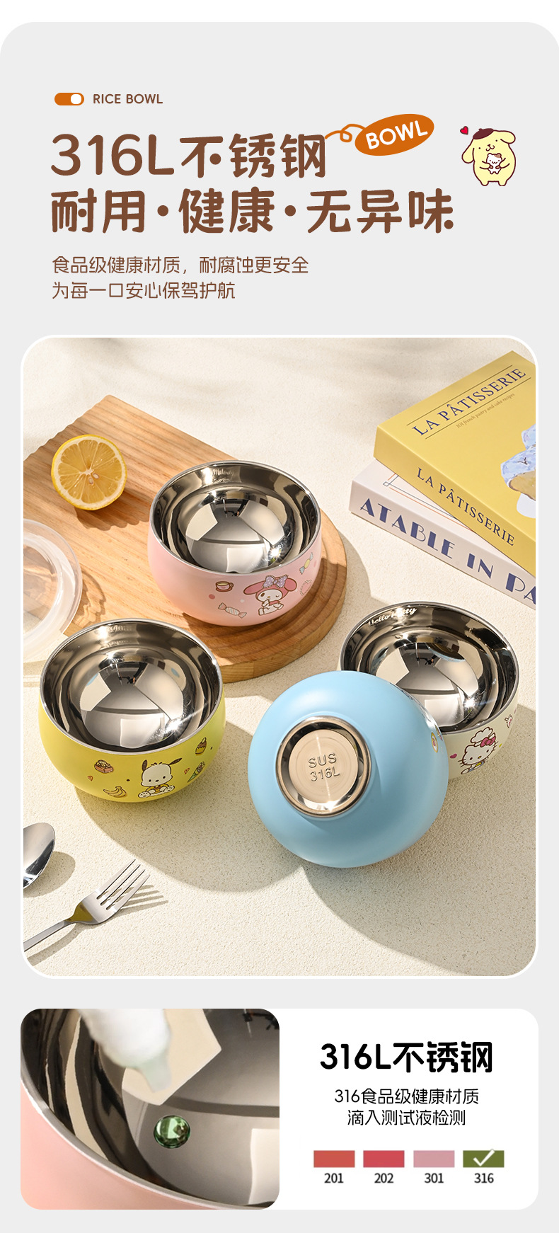 316 스테인레스 스틸 그릇 식품 등급 어린이 쌀 그릇 가정용 수프 그릇 커버 개인 특수 식기 안티-scald 안티 드롭 더블 레이어