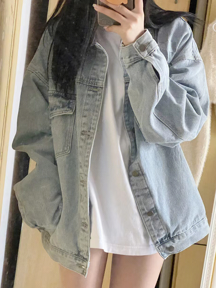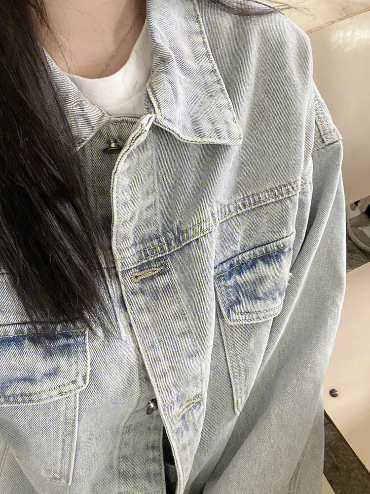 아메리칸 스타일 레트로 하이 스트리트 워시 블루 데님 재킷 여성 봄과 가을 올 매치 쁘띠 디자인 패션 재킷 트렌디스토어 가기