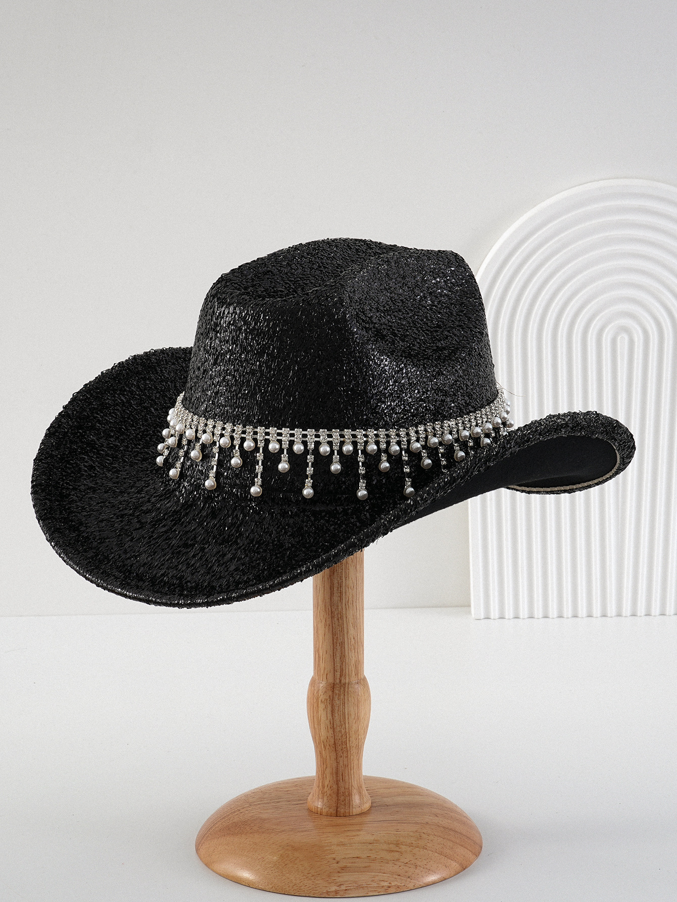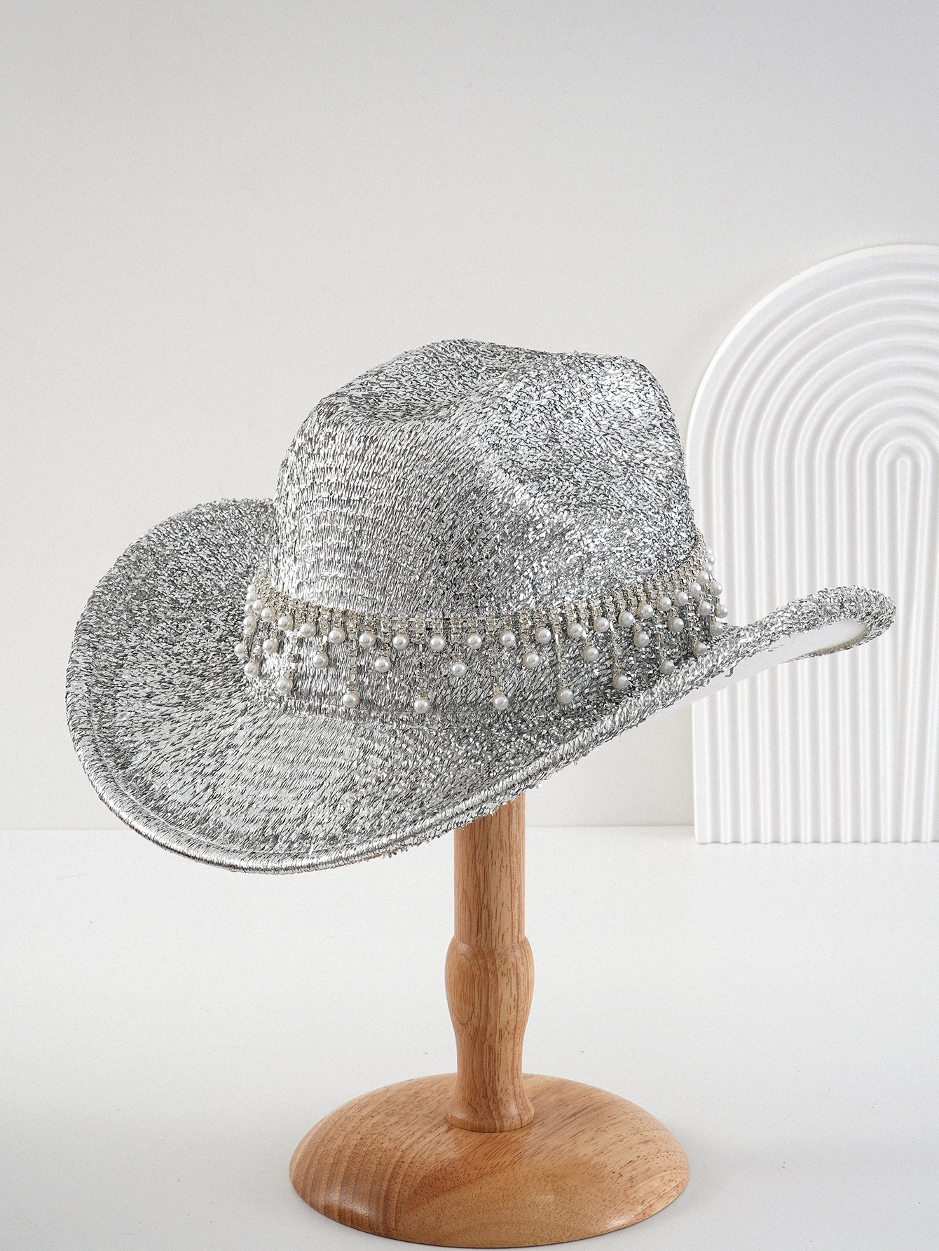 跨境爆款男女式拉丝高级礼帽奢华彩水钻配珍珠吊坠女郎帽聚会订婚