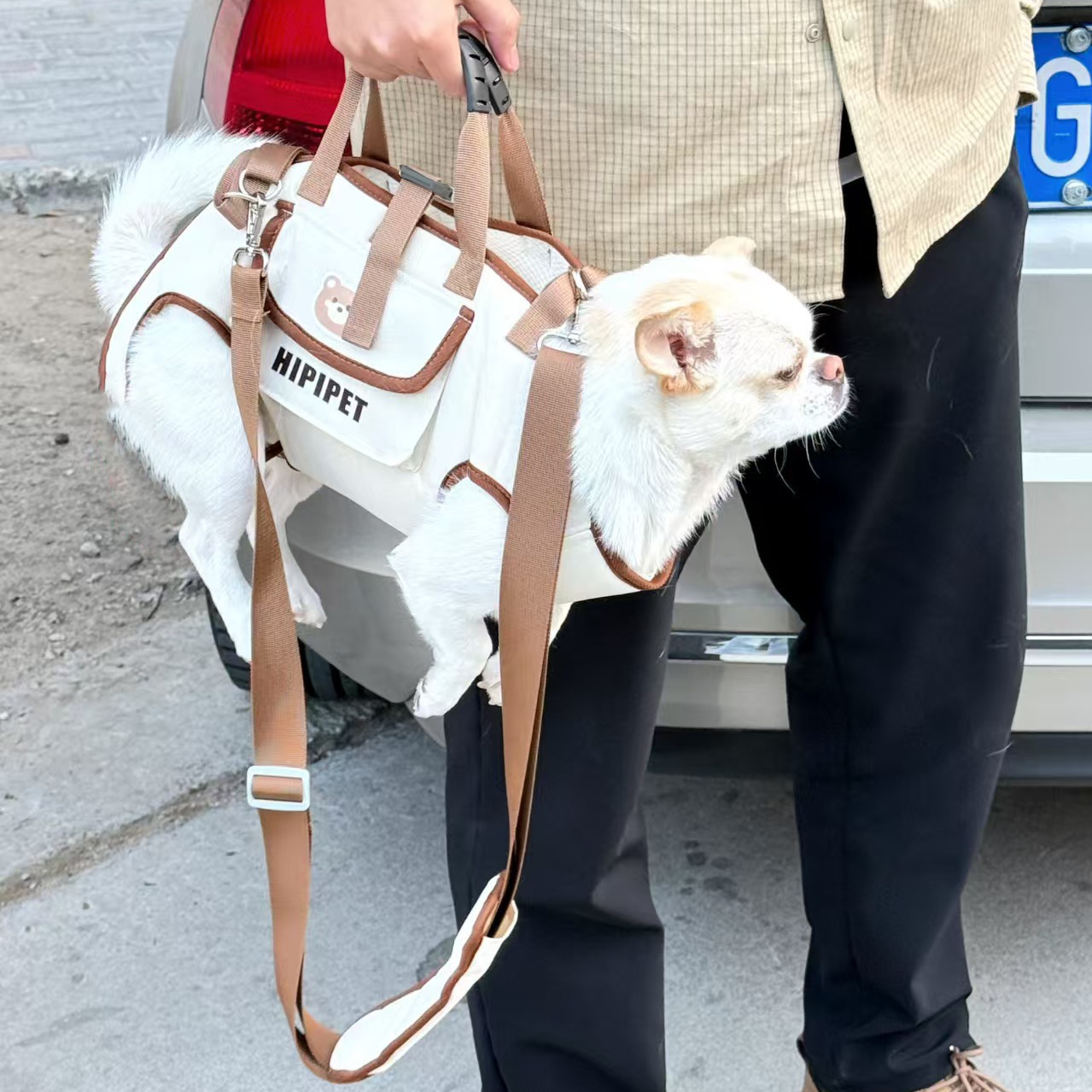 국경 개 나들이 배낭 어깨 휴대용 애완 동물 견인 배낭 휴대용 통기성 크로스 바디 스트랩 애완 동물 용품스토어 가기