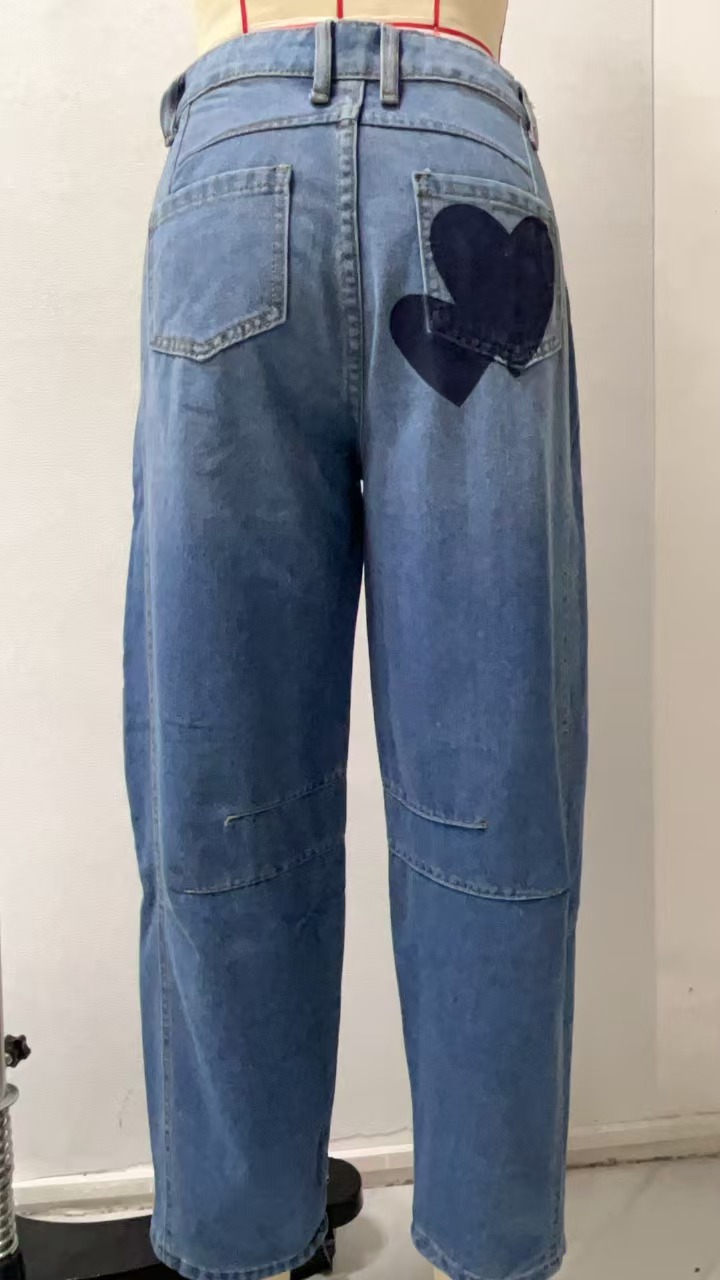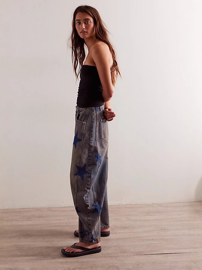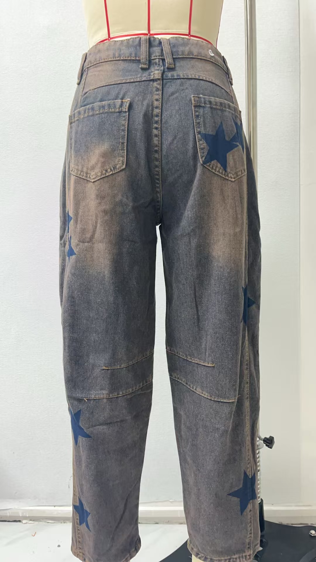 독립 스테이션 2025 국경 이베이 유럽과 미국 봄 캐주얼 루즈한 중간 허리 튜브 모양의 여성용 프린트 청바지 재고 있음