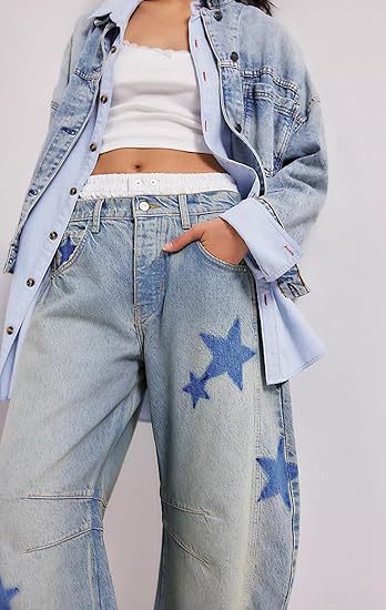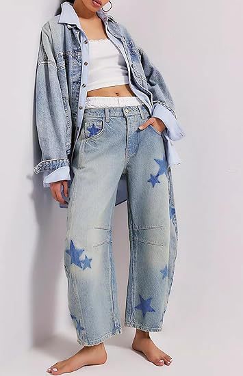 독립 스테이션 2025 국경 이베이 유럽과 미국 봄 캐주얼 루즈한 중간 허리 튜브 모양의 여성용 프린트 청바지 재고 있음스토어 가기