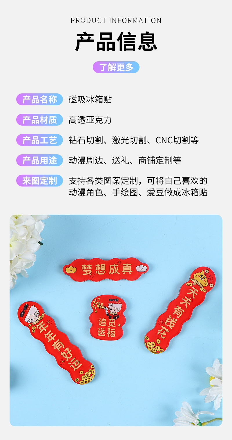 아크릴 커플 릿 냉장고 스티커 맞춤형 축제 만화 드롭 부드러운 자기 장식 마그네틱 아크릴 봄 축제 커플스토어 가기