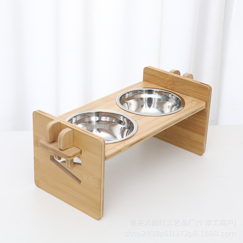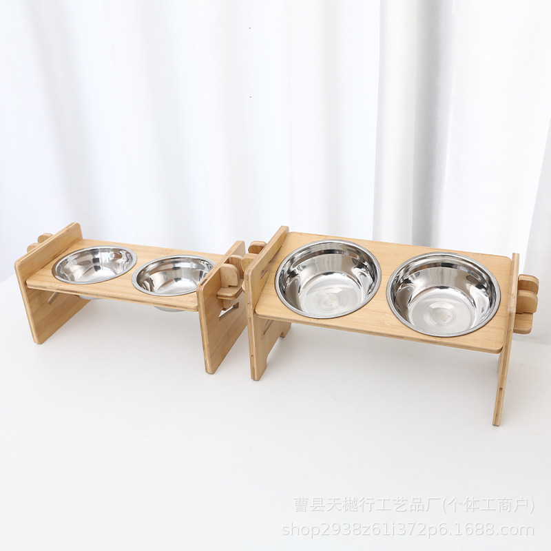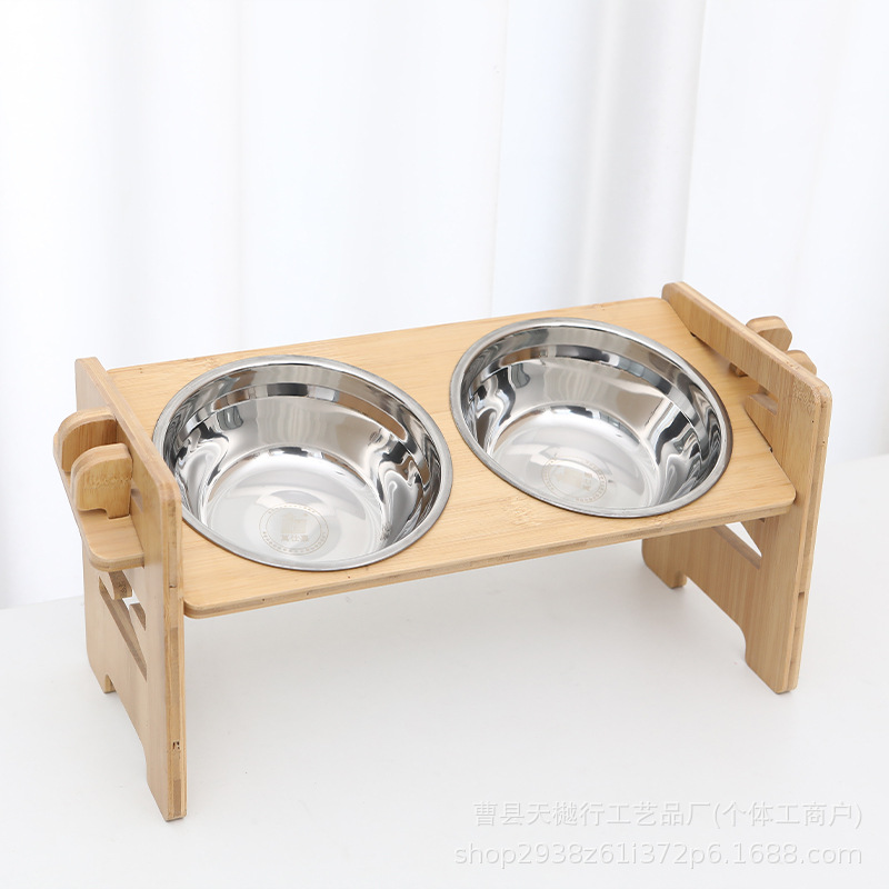 애완 동물 먹이 랙 조정 가능한 높이 강아지 피더 더블 그릇 고양이 식사 테이블 안티 노크 고양이 식품 랙 재고스토어 가기
