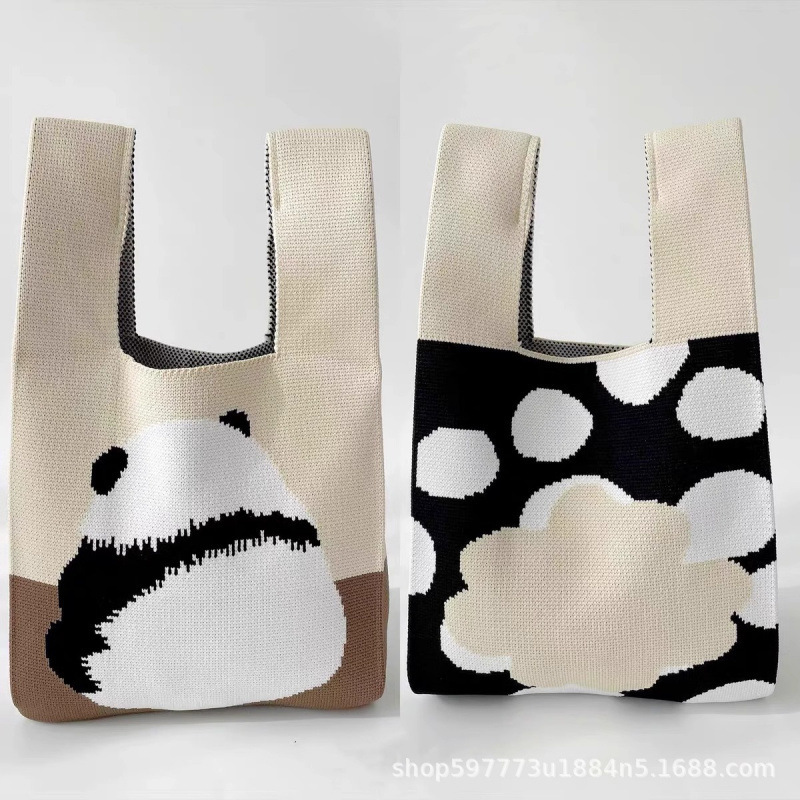 팬더 새로운 니트 가방 청두 관광 기념품 동반 선물 Guofeng 소녀 핸드백 짠 핸드백스토어 가기