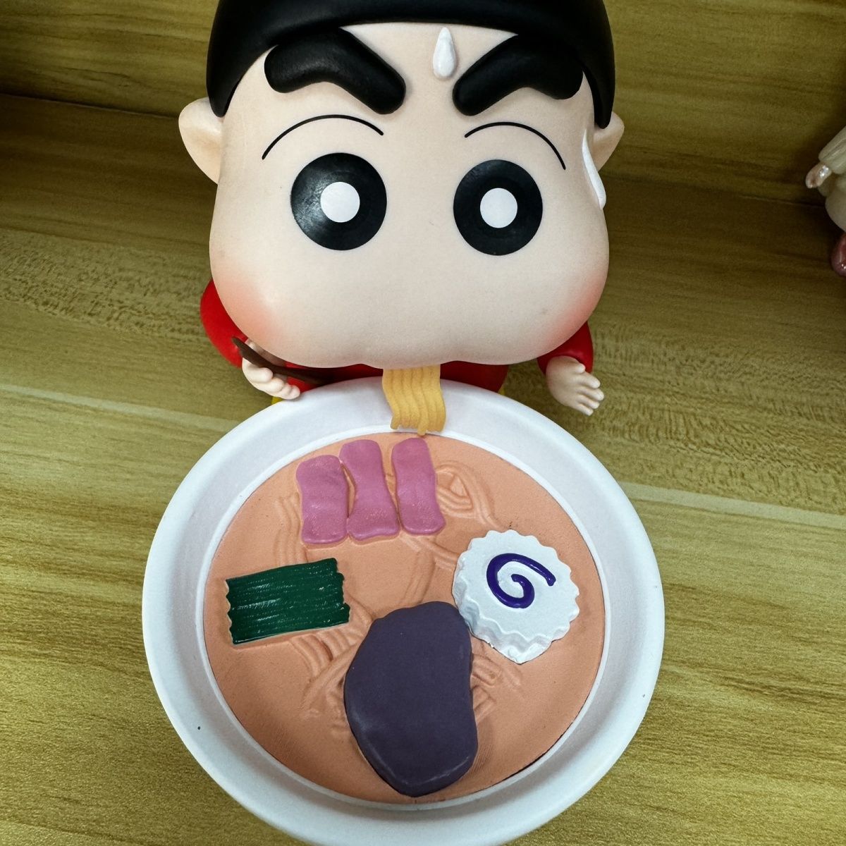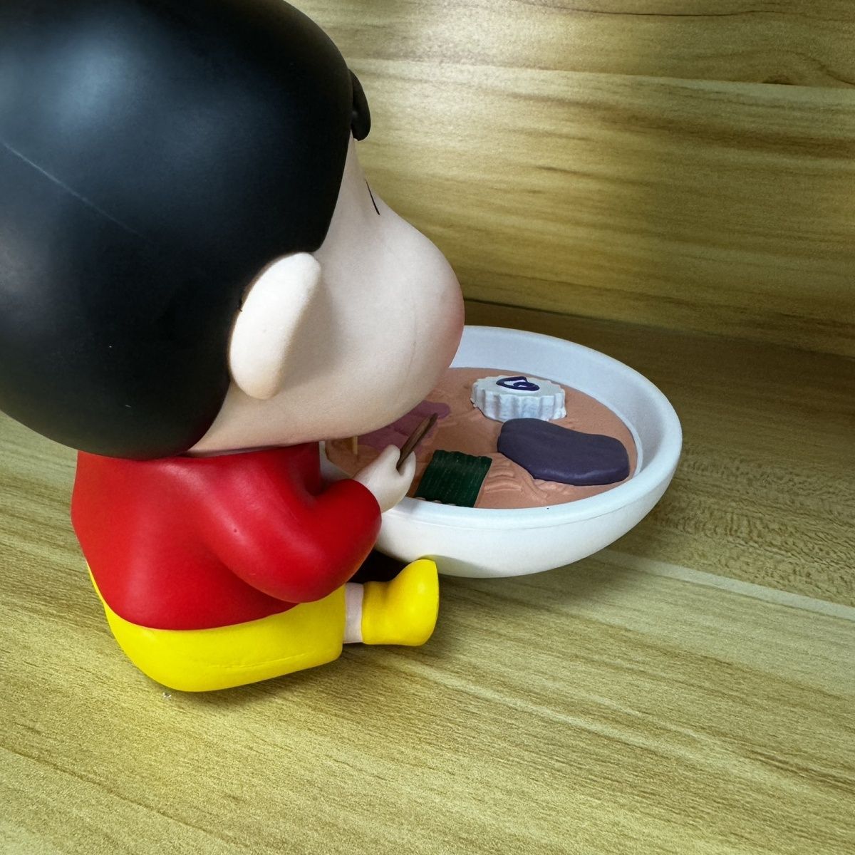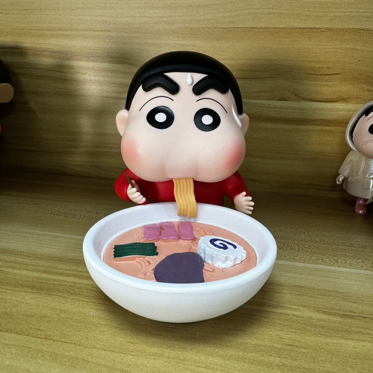 크레용 신짱 해피 뚱보 인형 기계 자동차 홈 장식품 국수 먹는 신짱 솔리드 PVC 데스크탑스토어 가기