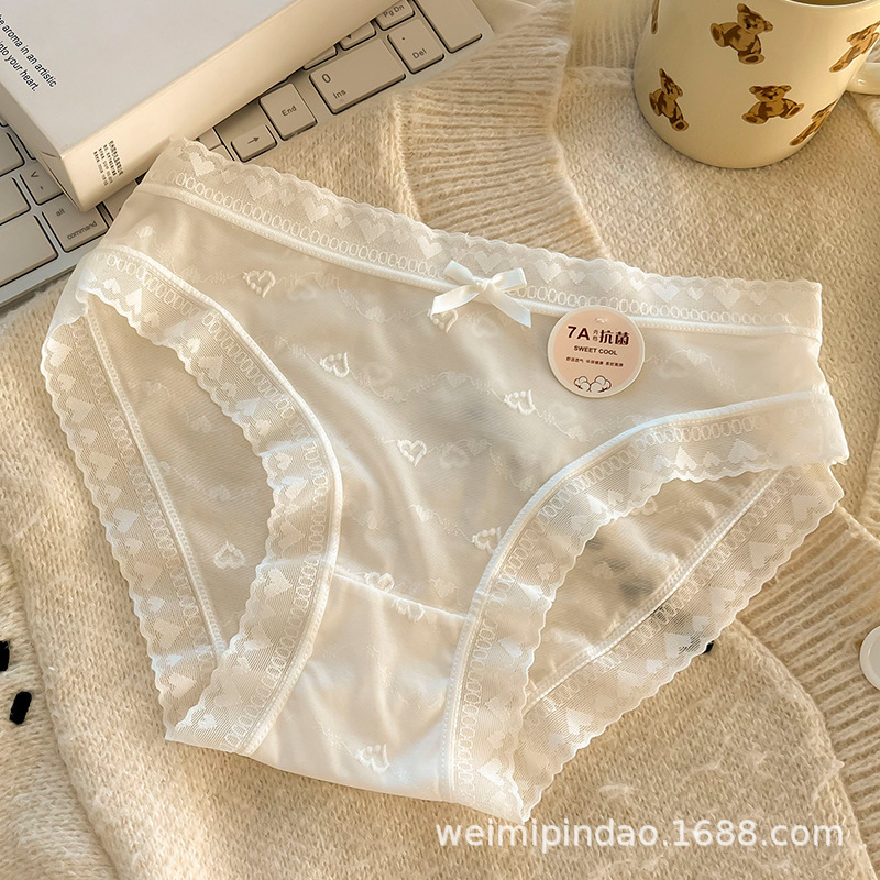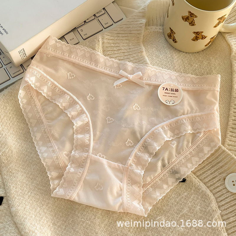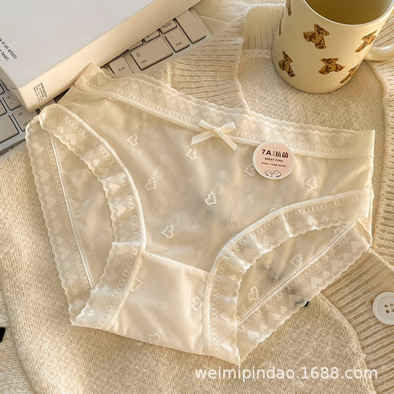 일본 소녀 레이스 얼음 실크 속옷 여성 가랑이 항균 속건성 원활한 시원한 통기성 섹시한 여성 삼각형 반바지