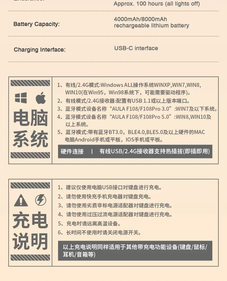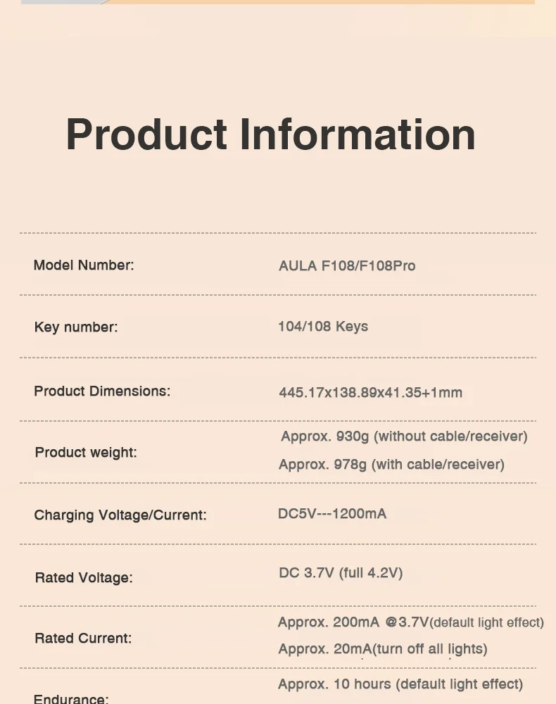 • [F108pro 마이크로 더스트] 카라멜 라떼 샤프트-무선 3모드 RGB 버전-8000mAh