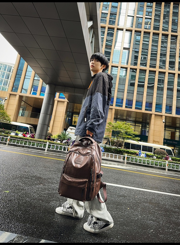 대용량 PU 소프트 가죽 스쿨백 남성과 여성 캐주얼 학생 스쿨백 외출 컴퓨터 배낭 비즈니스 여행 배낭스토어 가기