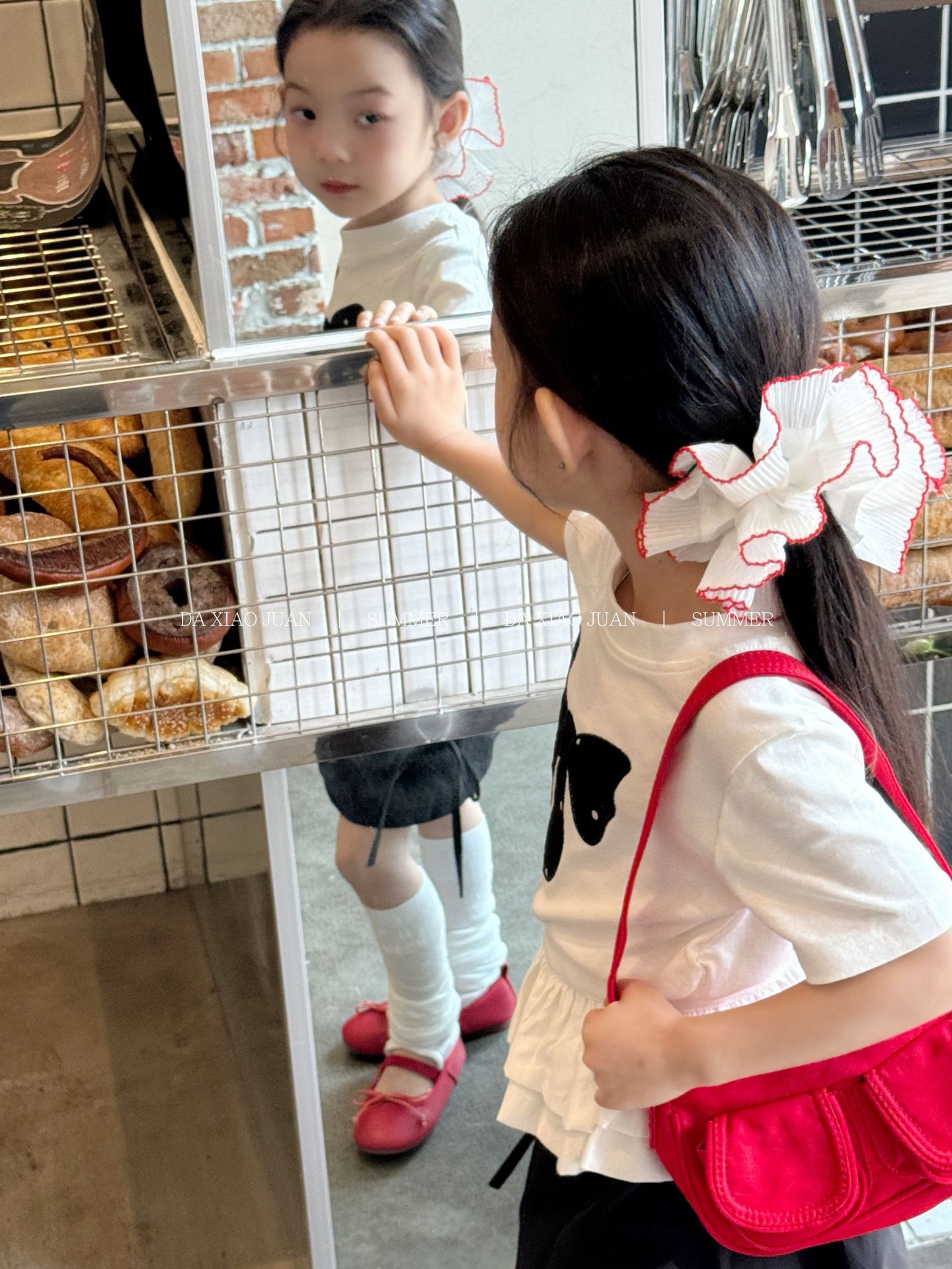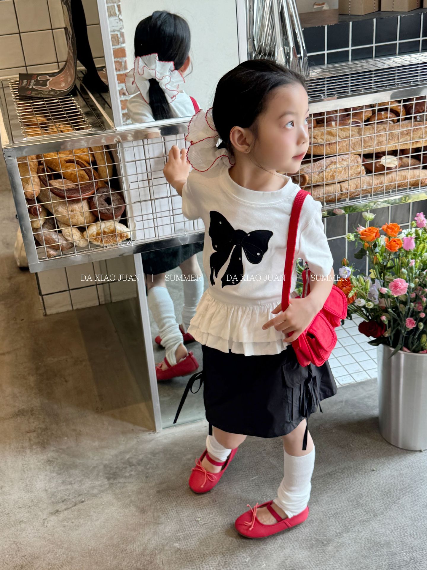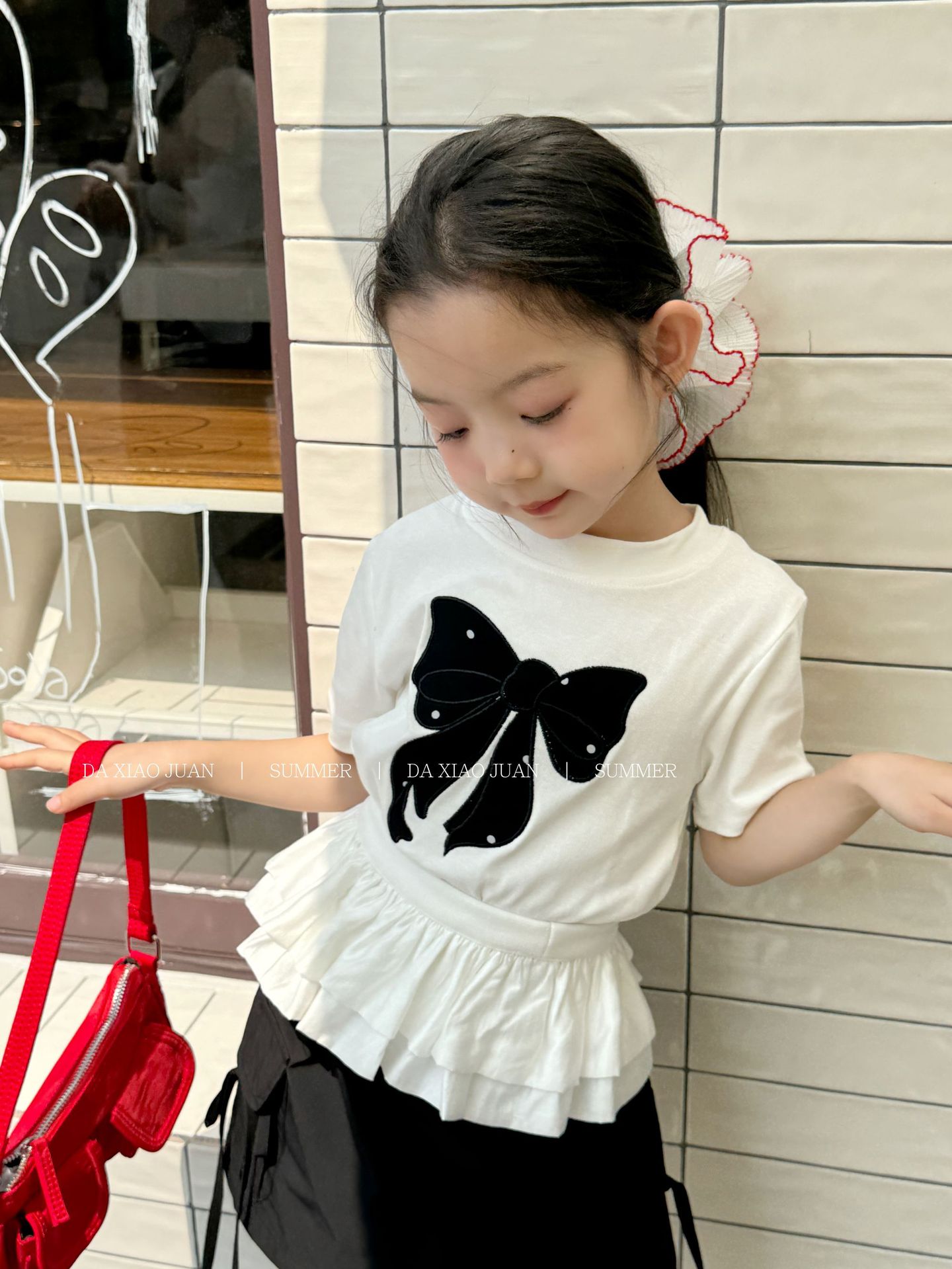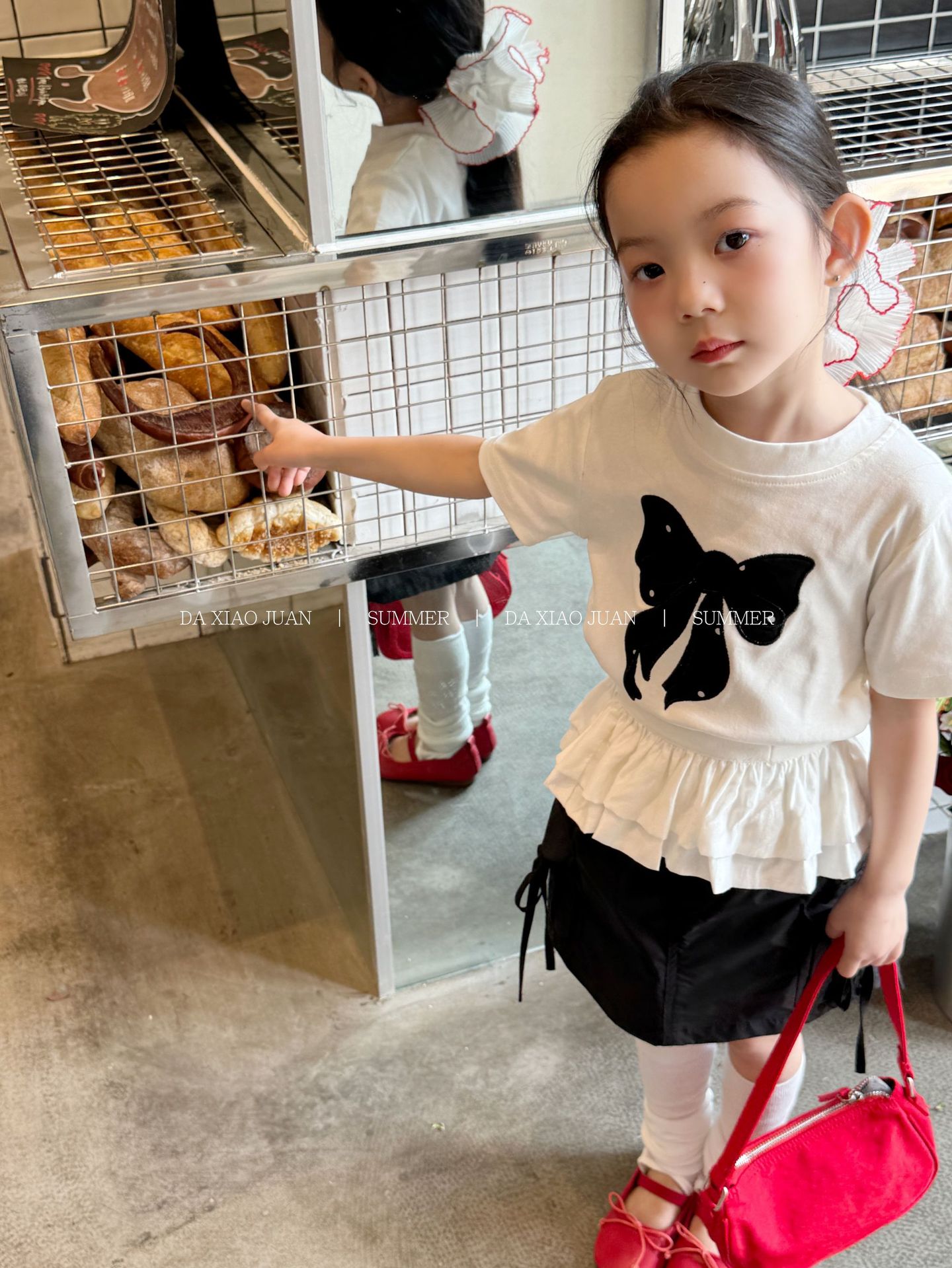 [크기] 어린이 여름 간단한 활 다재다능한 소녀 짧은 소매 T-32635