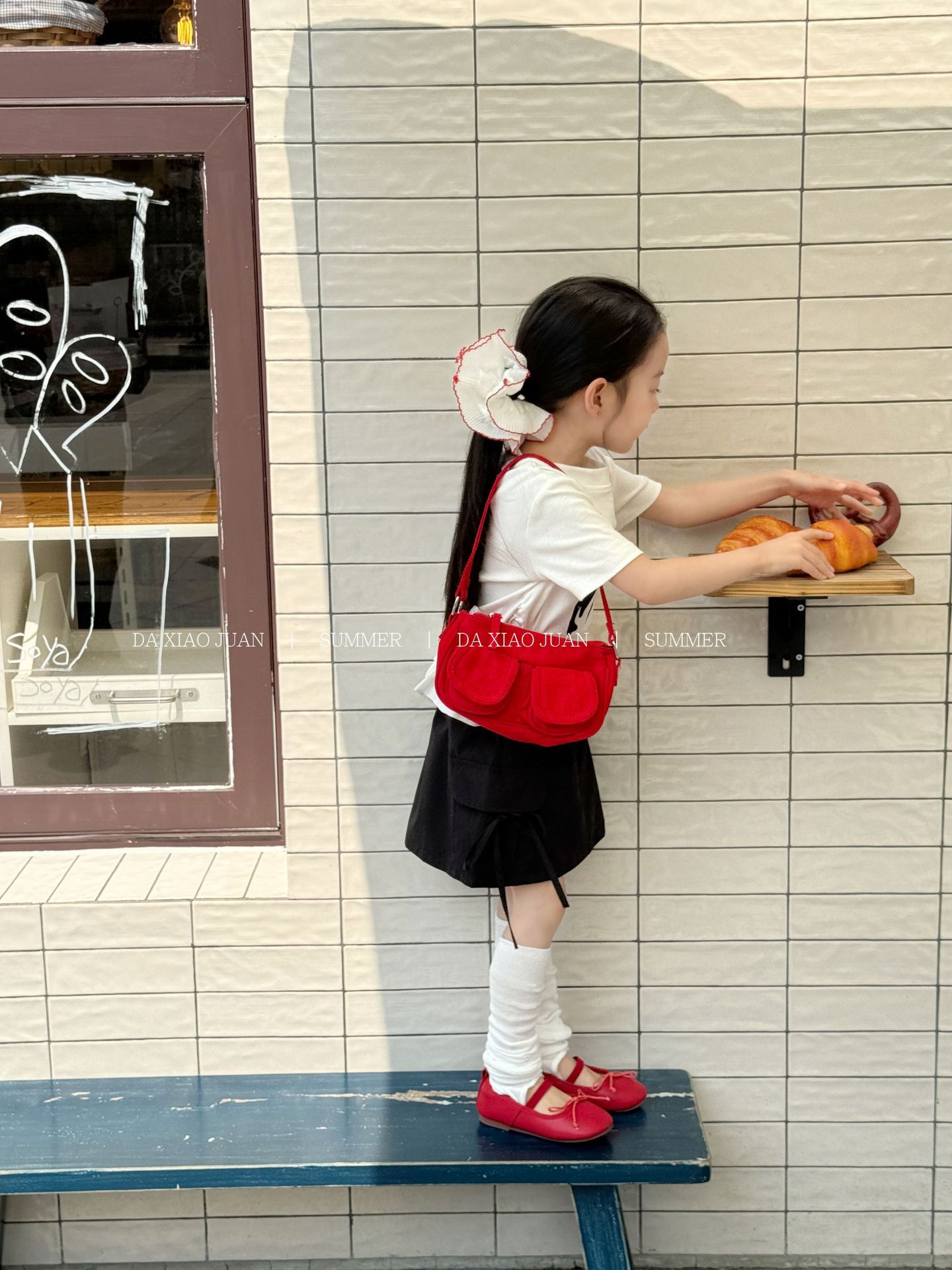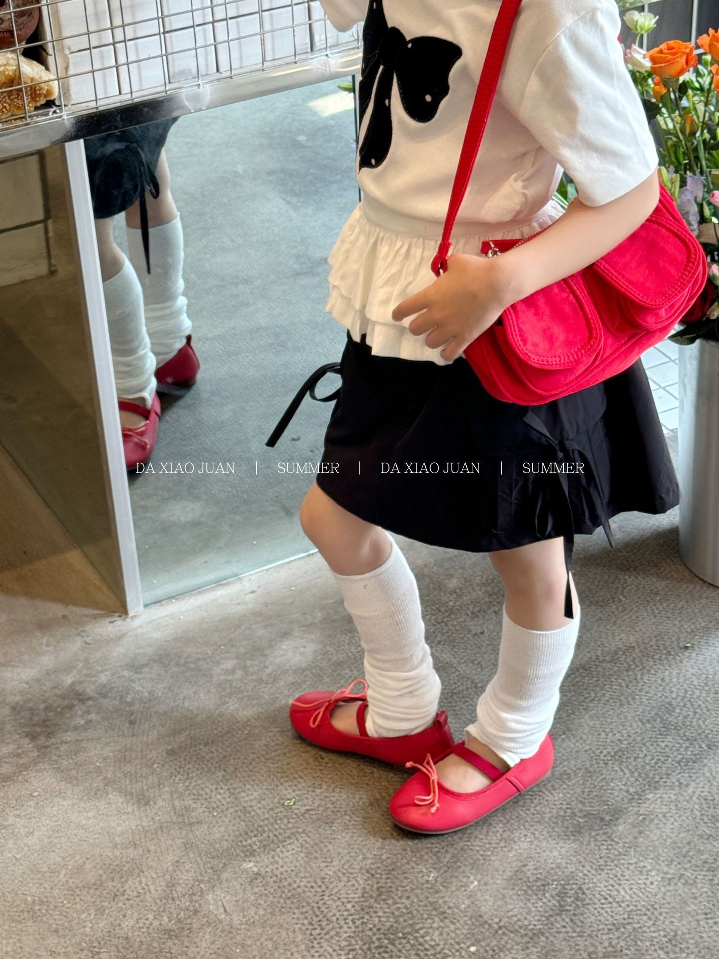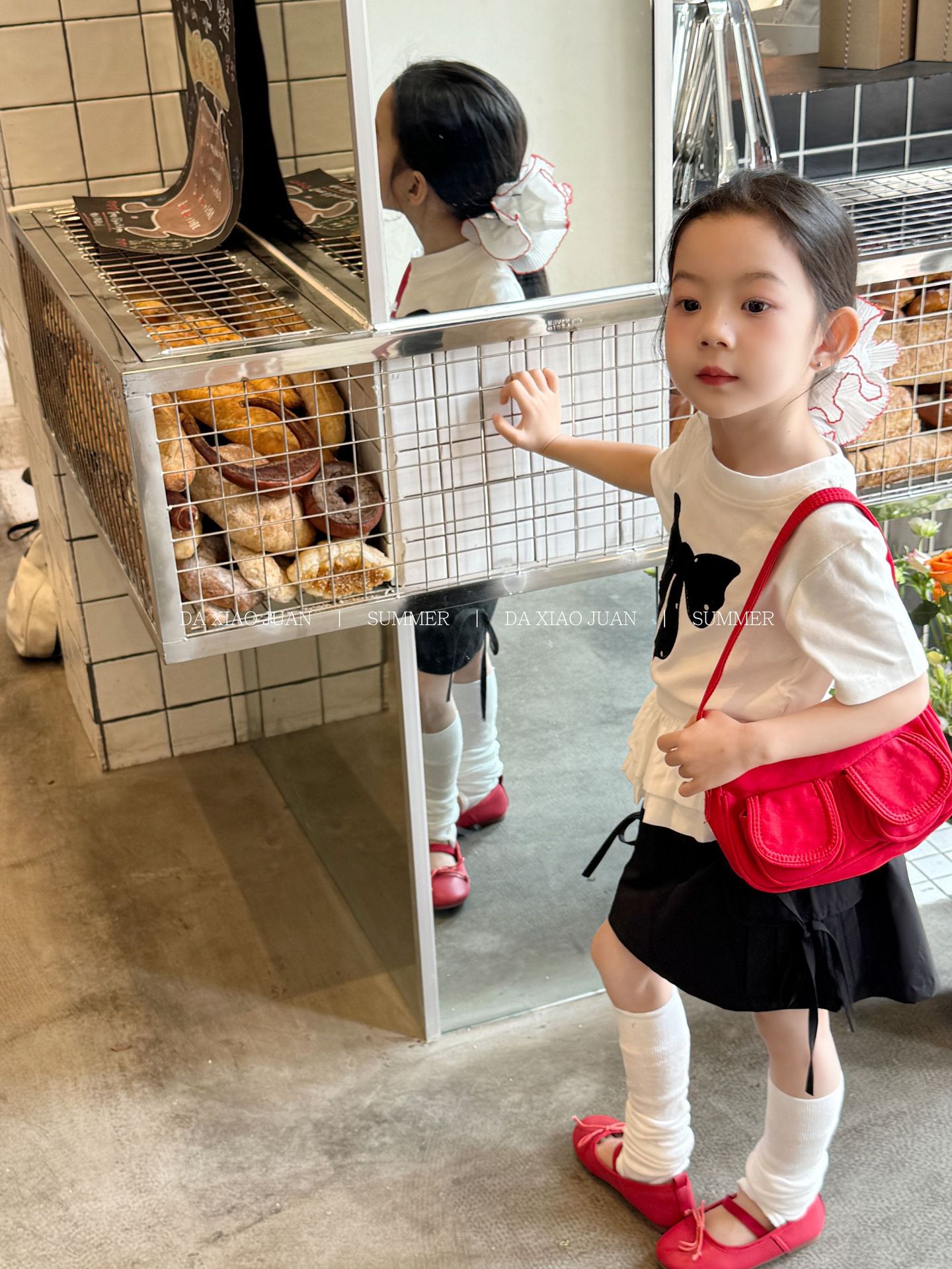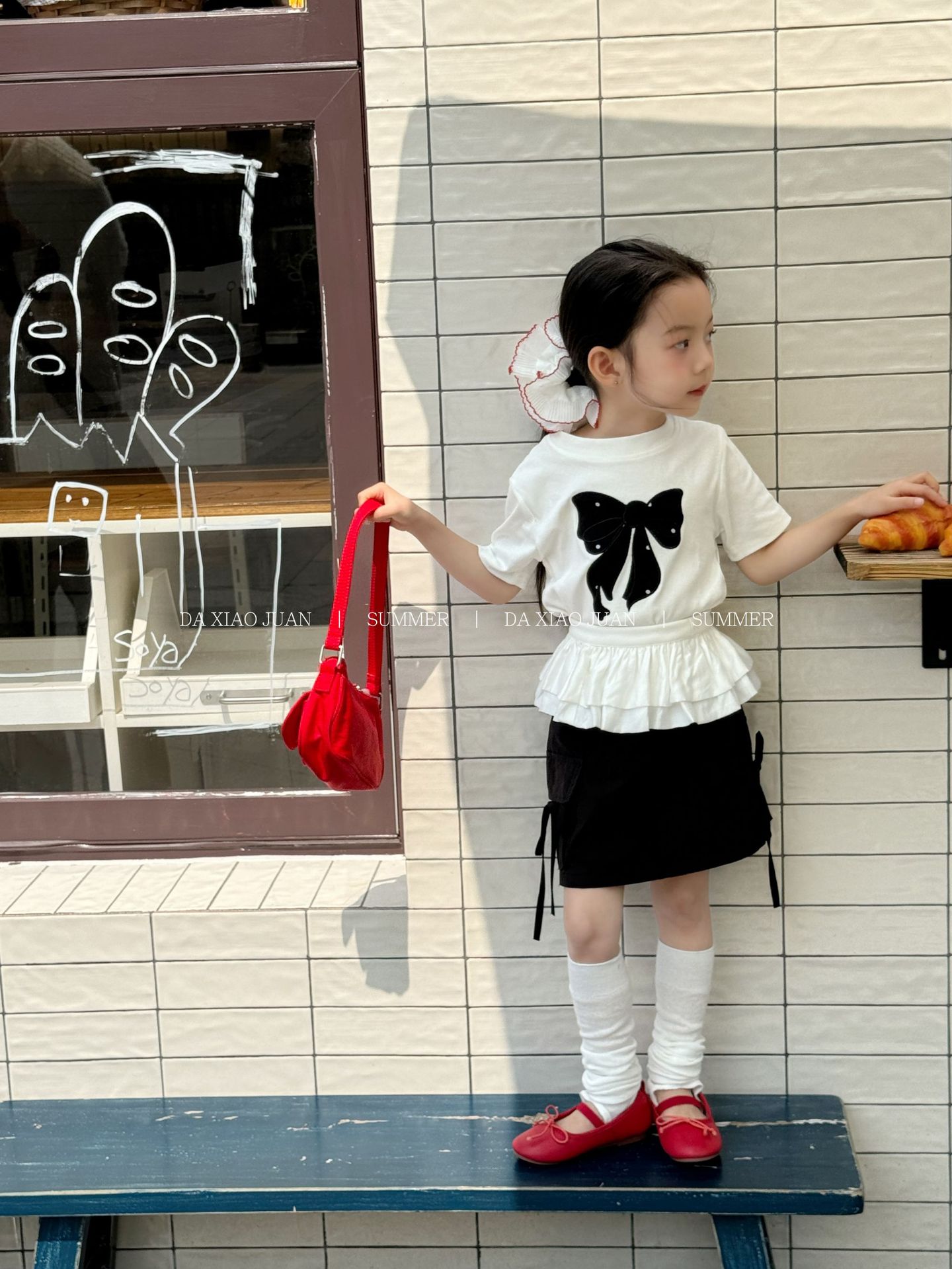 [크기] 어린이 여름 간단한 활 다재다능한 소녀 짧은 소매 T-32635