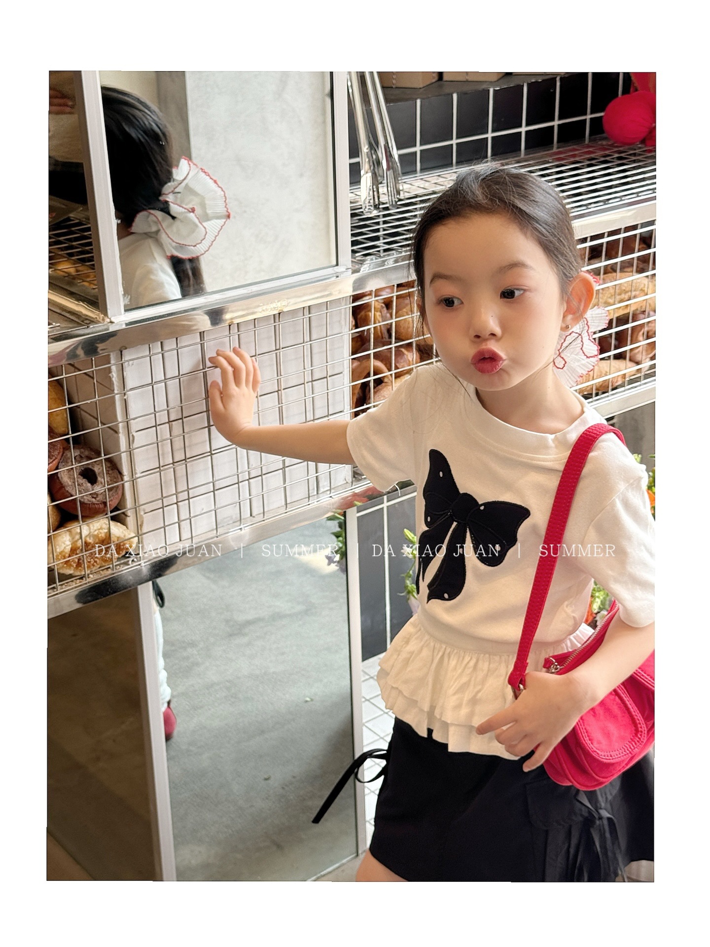 [크기] 어린이 여름 간단한 활 다재다능한 소녀 짧은 소매 T-32635스토어 가기