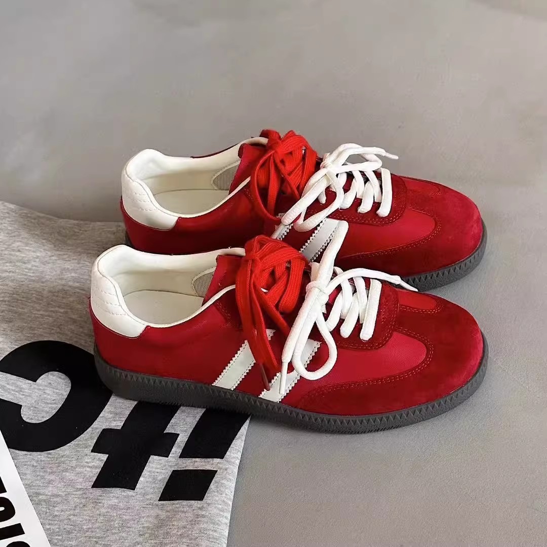 여성을위한 복고풍 빨간색 도덕 훈련 신발 2025 봄 새로운 핫 스타일 다목적 캐주얼 운동화 스포츠 플랫 포레스트 검프 신발스토어 가기