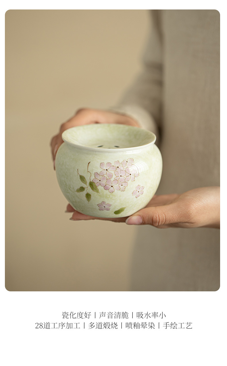 순수한 손으로 그린 파스텔 수국 꽃 Jianshui 차 Dregs 펜 세척 세라믹 차 세트 고급 차 장식품 차 세트 액세서리 세트스토어 가기