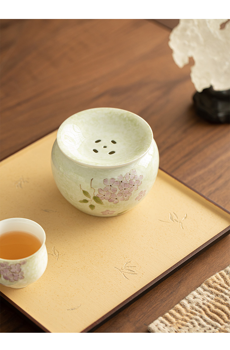 순수한 손으로 그린 파스텔 수국 꽃 Jianshui 차 Dregs 펜 세척 세라믹 차 세트 고급 차 장식품 차 세트 액세서리 세트